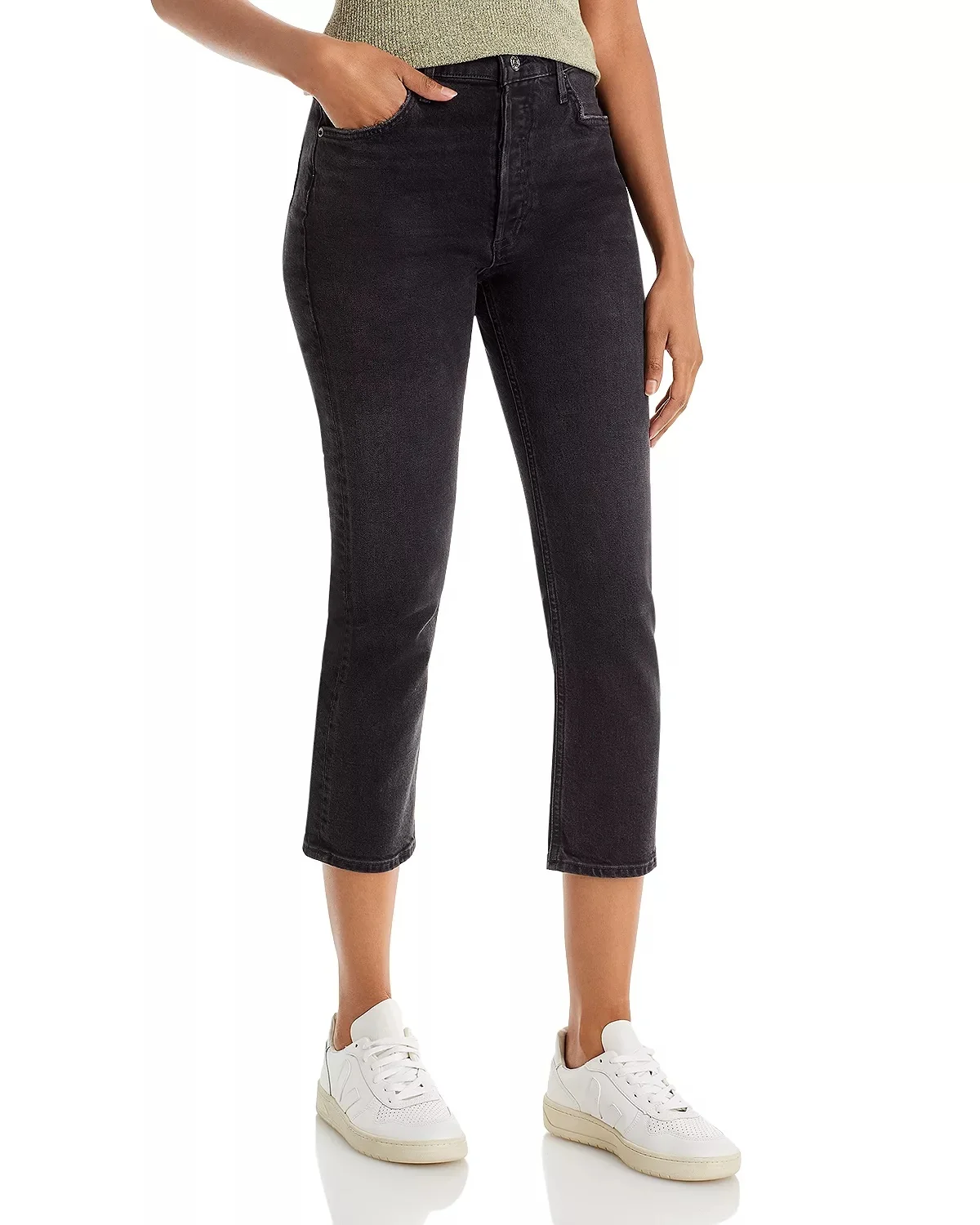 PRODUCT DETAILS - Fits true to size, order your normal size - High rise: 11.5" - Ankle inseam:26" - Leg opening: 14" - All measurements based on a size 27 - Model measurements: 5'10" height, 33.5" bust, 23.5" waist, 34.5" hips, wearing a size 27 - Button fly, five-pocket silhouette - Belt loops - Black wash - Straight-leg silhouette, cropped, sewn cuffs - AGOLDE continues to increase their use of recycled fabrications and materials in an effort to close the loop and bring fashion into a more circular model. - Made in Turkey Web ID: 3733461 MATERIAL & CARE - 59% organic cotton/40% viscose/1% elastane - Machine wash