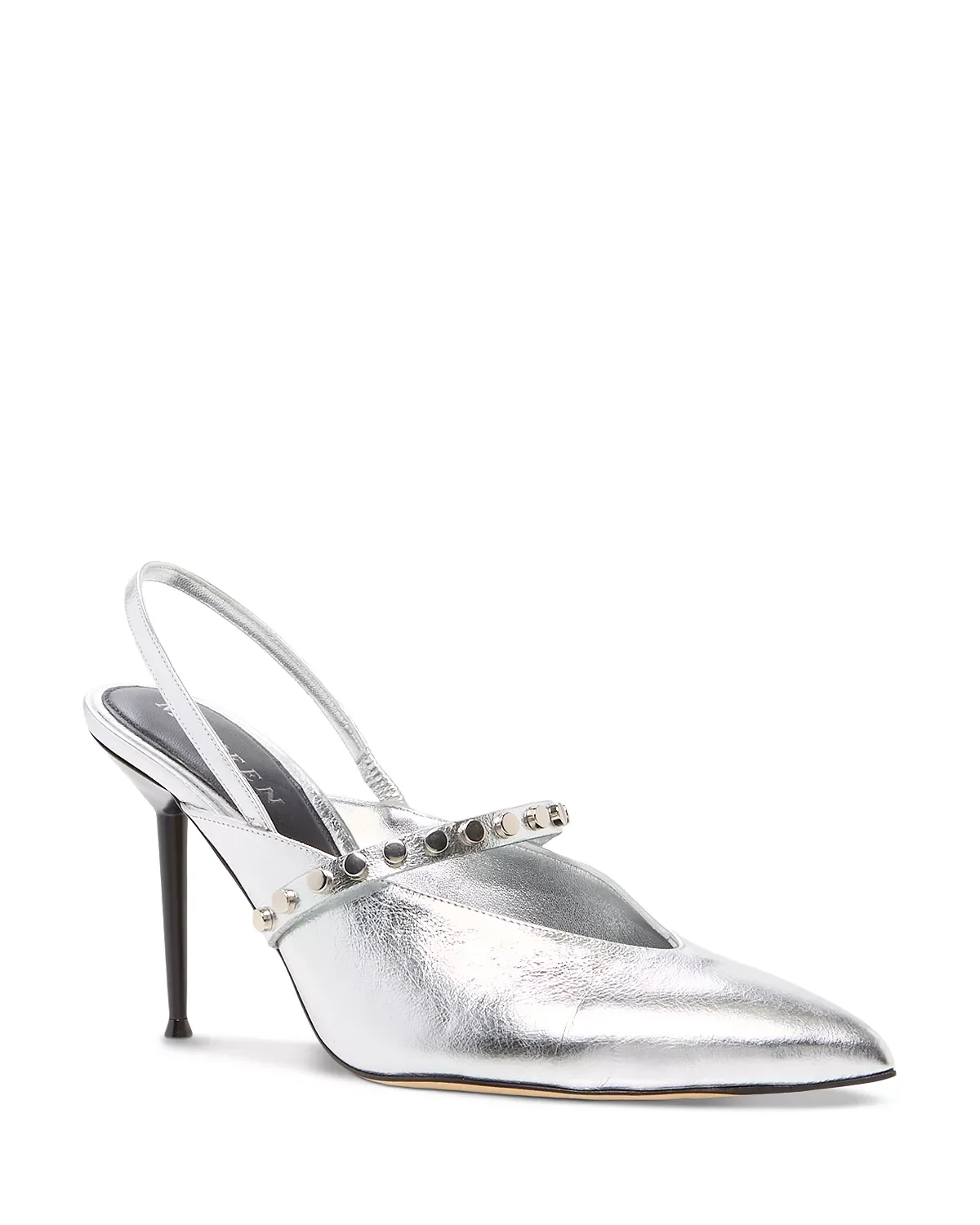 PRODUCT DETAILS - Fits true to size, order your normal size - Pointed toe - Slip on - Stud detailing - 3.54" heel - Leather upper and sole, unlined - Made in Italy Web ID: 5568602