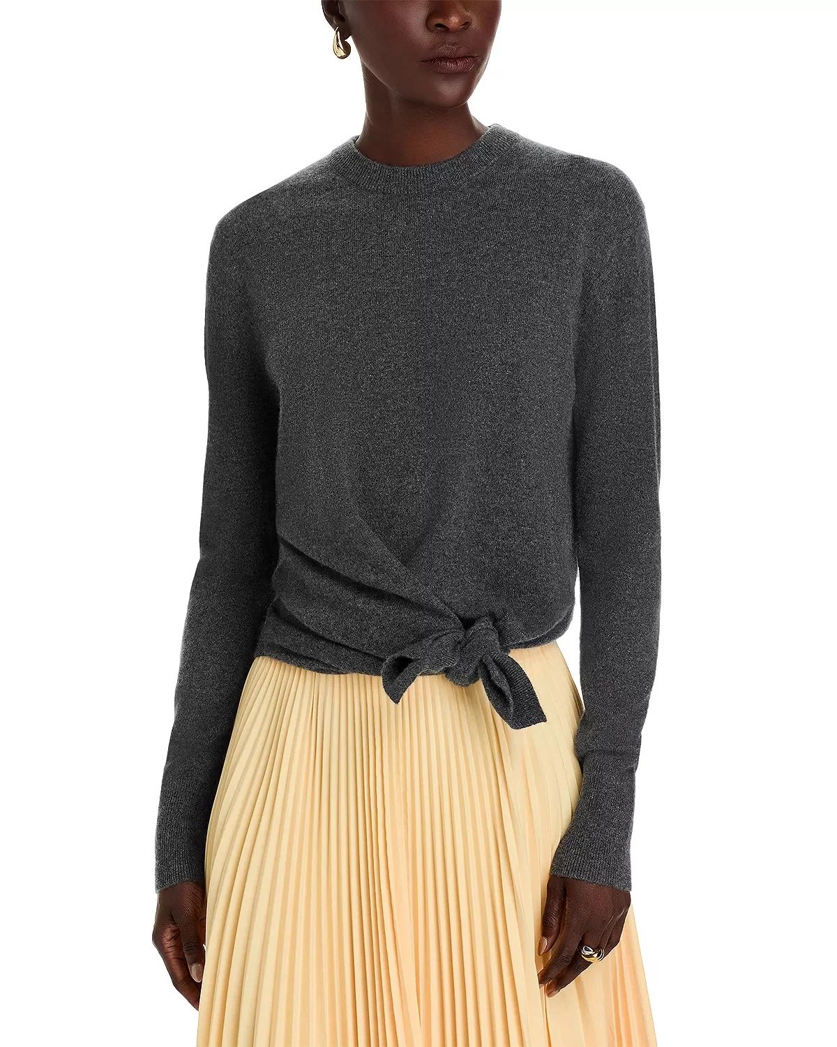 SIZE & FIT - Fits true to size, order your normal size - Model measurements: 5'10" height, 33.5" bust, 23.5" waist, 34.5" hips, wearing a size small PRODUCT DETAILS - Crewneck - Long sleeves with ribbed cuffs - Ribbed hem with signature knot detailing - Pullover style - Imported Web ID: 4935641 MATERIAL & CARE - Cashmere - Hand wash