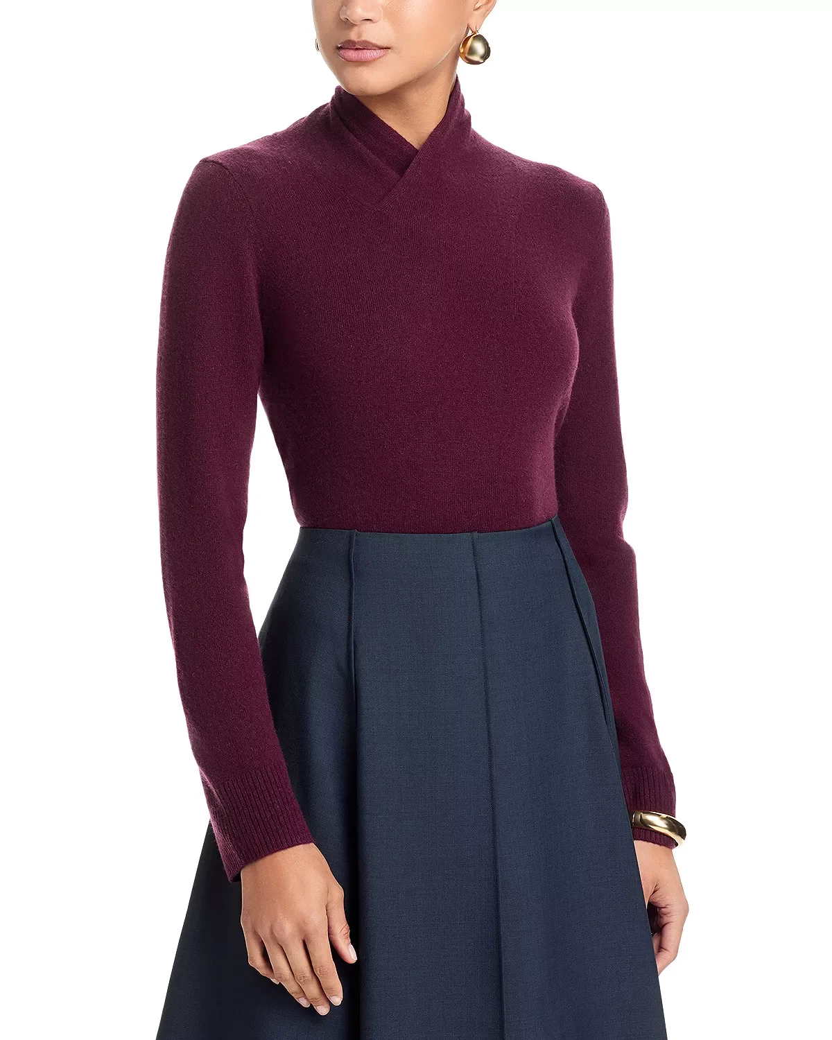 SIZE & FIT - Fits true to size, order your normal size PRODUCT DETAILS - High crossover neck - Long sleeves - Pullover style - Ribbed at cuffs and hem - Made in Italy Web ID: 5842164 MATERIAL & CARE - 100% cashmere - Dry clean