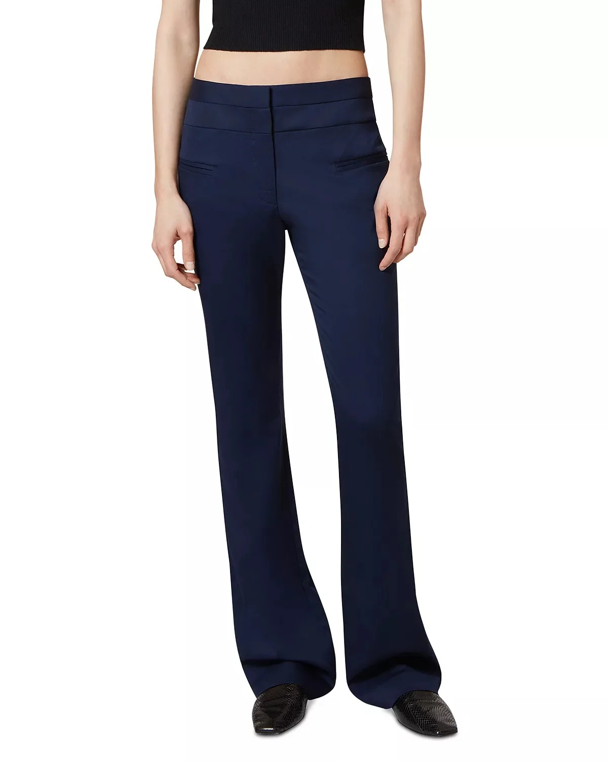 SIZE & FIT - Fits true to size, order your normal size - 10" rise, 32" inseam, 20" leg opening, based on a size 36 - Model measurements: 5'10" height, 33.5" bust, 23.5" waist, 34.5" hips, wearing a size 36 PRODUCT DETAILS - Zip fly with hook-and-bar closure, clean inset waistband - Front welt pockets - Bootcut silhouette - Made in Italy Web ID: 4932652 MATERIAL & CARE - 98% virgin wool/2% elastane - Dry clean