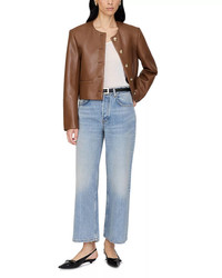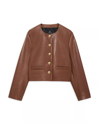 PRODUCT DETAILS - Crewneck - Front button closures - Long sleeves - Two front welt pockets - Partially leather finish - Imported Web ID: 5601786 MATERIAL & CARE - 48% leather/25% polyester/27% polyurethane - Dry clean