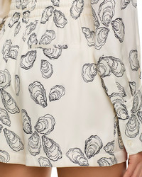 SIZE & FIT - Fits true to size, order your normal size - Designed for a relaxed fit - 11.5" front rise, 4.75" inseam, 30" leg opening PRODUCT DETAILS - Pull-on style; elasticized waistband - Two side slant pockets - Oyster print - Imported Web ID: 5428589 MATERIAL & CARE - 52% silk/48% rayon - Dry clean