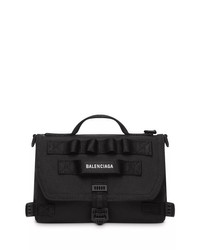 SIZE & FIT - In 1917, one of the most storied and influential houses in fashion history was founded in San Sebastian, Spain, by Basque-born couturier Cristobal Balenciaga. A move to Paris in 1937 paved the - way for Balenciaga to step into the international spotlight, as the master tailor and visionary designer debuted a slew of now-iconic sculptural silhouettes from cocoon coats to tunic dresses, before - retiring in 1968 and effectively closing the house's doors for decades. Along with Nicolas Ghesquiere, who served an award-winning stint at the label's helm from 1997 until 2012, - current creative director and Vetements cofounder Demna Gvasalia is widely credited with reviving the house to its former glory. Inspired by both the Balenciaga archives and modern streetwear - aesthetics, Gvasalia creates highly covetable pieces like sock sneakers and logo-print totes. - creates highly covetable pieces like sock sneakers and logo-print totes. PRODUCT DETAILS - Adjustable removable shoulder strap, 18" drop - Top handle, 2" drop - Dimensions: 3.5"W x 8.8"D x 7.2"H - Flap with buckle closure - Exterior zip pocket, interior slip pocket - Exterior luggage straps and storage loops - Logo at front - Lined - Nylon and polyester - Made in Italy Web ID: 4046908