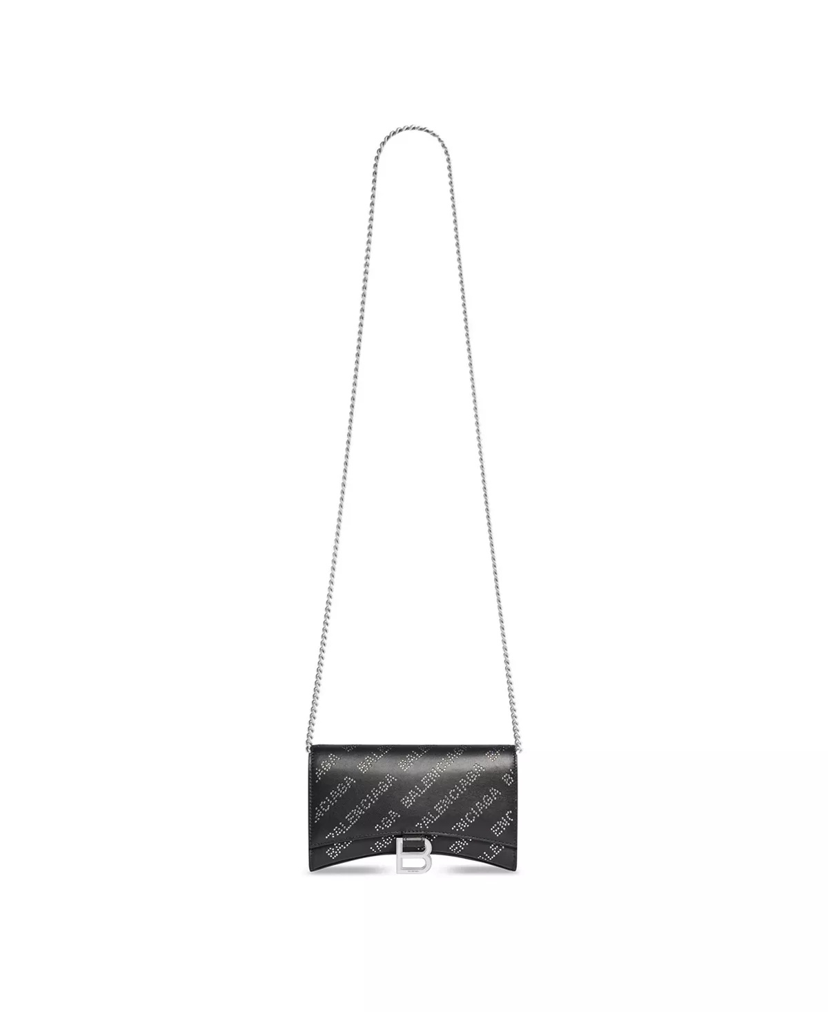 Women's Hourglass Wallet On Chain With Rhinestones in Black