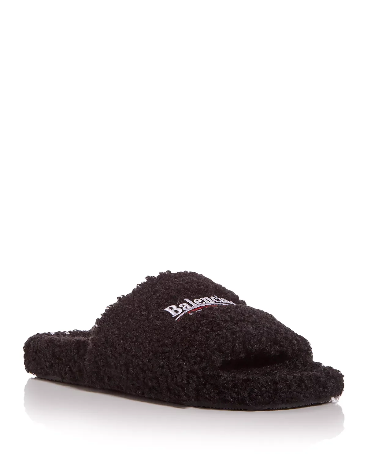 PRODUCT DETAILS - Fits true to size, order your normal size - Open toe - Slip on - Faux fur upper - Logo at strap - Polyester upper and lining, rubber sole - Made in Italy Web ID: 5865838