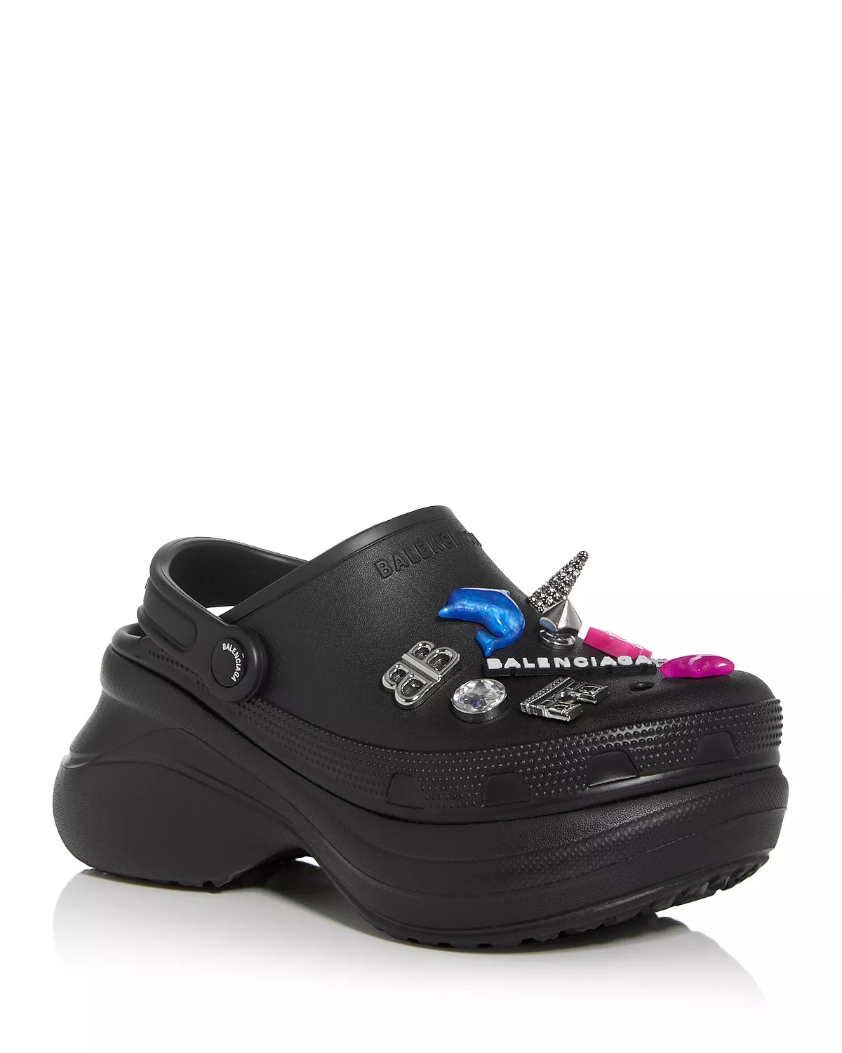 PRODUCT DETAILS - Fits true to size, order normal size - Designed in collaboration with Crocs - Round toe - Slingback strap - Perforated detailing - Embellished logo Jibbitz™ charms at toe - Logo at strap and heel - 3" wedge heel, 1.75" platform, feels like 1.25" heel - Synthetic upper, lining and sole - Imported Web ID: 5378426