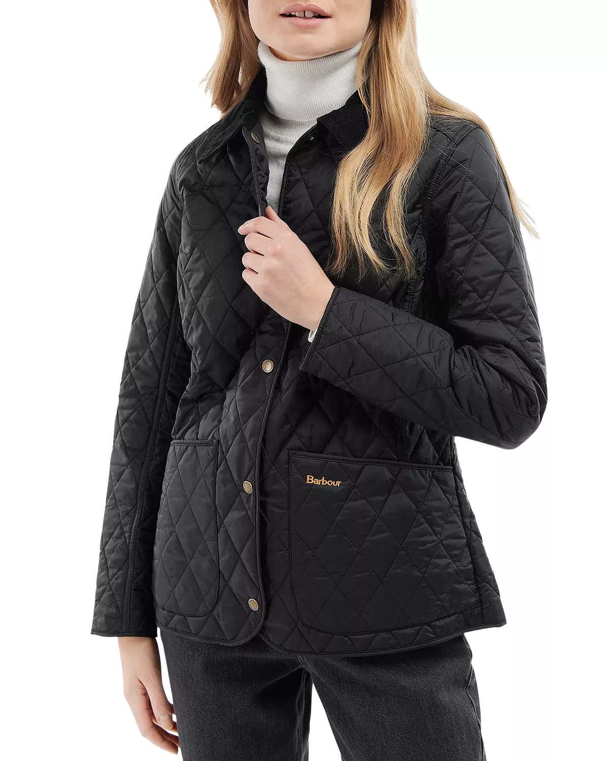 SIZE & FIT - Fits true to size, order your normal size PRODUCT DETAILS - Corduroy spread collar - Front snap closures - Long sleeves - Patch pockets at hip, contrast embroidered logo at left pocket - Allover diamond quilting - Lined Web ID: 4466518 MATERIAL & CARE - Shell and lining: 100% polyamide; collar: 100% cotton; fill: 100% polyester - Machine wash
