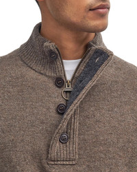 SIZE & FIT - Fits true to size, order your normal size PRODUCT DETAILS - Mock neck - Long sleeves with leather elbow patches - Partial front zip and button closures - Imported Web ID: 5284891 MATERIAL & CARE - Outer: 100% wool; trim 1: 100% polyester; trim 2: leather - Hand wash