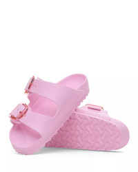 SIZE & FIT - Consciously healthy, effortlessly chic, BIRKENSTOCK creates elevated, comfortable shoes informed by tradition and history--and made with heritage craftsmanship. - At the heart of every BIRKENSTOCK design is the brand's anatomical footbed for happy, healthy feet and all-day comfort. - And for more than 200 years, BIRKENSTOCK has led the way in sophisticated footwear for men, women, and kids that is as classic as it is modern and as trend-forward as it is timeless. Not only does BIRKENSTOCK create - shoes that are good for you, but the brand works to ensure that its shoes and its business practices are also good for people and the planet. - With its commitment to meeting stringent social and environmental standards, the company has, since 1774, worked to embrace what is now known as "corporate social responsibility." - By using natural, renewable materials, like cork and jute, as well as quality craftsmanship, BIRKENSTOCK shoes are naturally durable. And thanks to the brand's vertical integration, it can tightly monitor its business practices and those of its - partners for ethical conduct. Further, the company takes an active role to help solve the challenges facing society--enabling the brand to help create a better world for future generations. PRODUCT DETAILS - Fits true to size, order your normal size - Shock absorbing, waterproof and skin-friendly - Open toe - Slip on - Buckled strap detailing - EVA upper, lining and sole - Made in Germany Web ID: 5212443