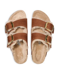 PRODUCT DETAILS - Fits true to size, order your normal size - Available in full sizes only; if between sizes, order the next size up - Features Boost™ technology for continuous responsive energy - Contoured cork footbed supports arches of foot and cradles heel for all-day comfort - Open toe - Slip on - Real sheep shearling lining - Logo at buckles and side - Real sheep shearling, origin: Spain, New Zealand, dyed - Leather upper, real sheep shearling lining, ethylene-vinyl acetate (EVA) sole - Made in Germany Web ID: 4682722