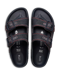 SIZE & FIT - Consciously healthy, effortlessly chic, BIRKENSTOCK creates elevated, comfortable shoes informed by tradition and history--and made with heritage craftsmanship. - At the heart of every BIRKENSTOCK design is the brand's anatomical footbed for happy, healthy feet and all-day comfort. - And for more than 200 years, BIRKENSTOCK has led the way in sophisticated footwear for men, women, and kids that is as classic as it is modern and as trend-forward as it is timeless. Not only does BIRKENSTOCK create - shoes that are good for you, but the brand works to ensure that its shoes and its business practices are also good for people and the planet. - With its commitment to meeting stringent social and environmental standards, the company has, since 1774, worked to embrace what is now known as "corporate social responsibility." - By using natural, renewable materials, like cork and jute, as well as quality craftsmanship, BIRKENSTOCK shoes are naturally durable. And thanks to the brand's vertical integration, it can tightly monitor its business practices and those of its - partners for ethical conduct. Further, the company takes an active role to help solve the challenges facing society--enabling the brand to help create a better world for future generations. PRODUCT DETAILS - Fits true to size, order your normal size - Anatomical shaped BIRKENSTOCK cork- Latex Footbed, covered with premium, color matching leather - Open toe - Slip on - Buckled strap detailing - 0.11" heel - Leather/cotton upper, suede lining, EVA sole - Made in Germany Web ID: 5259779