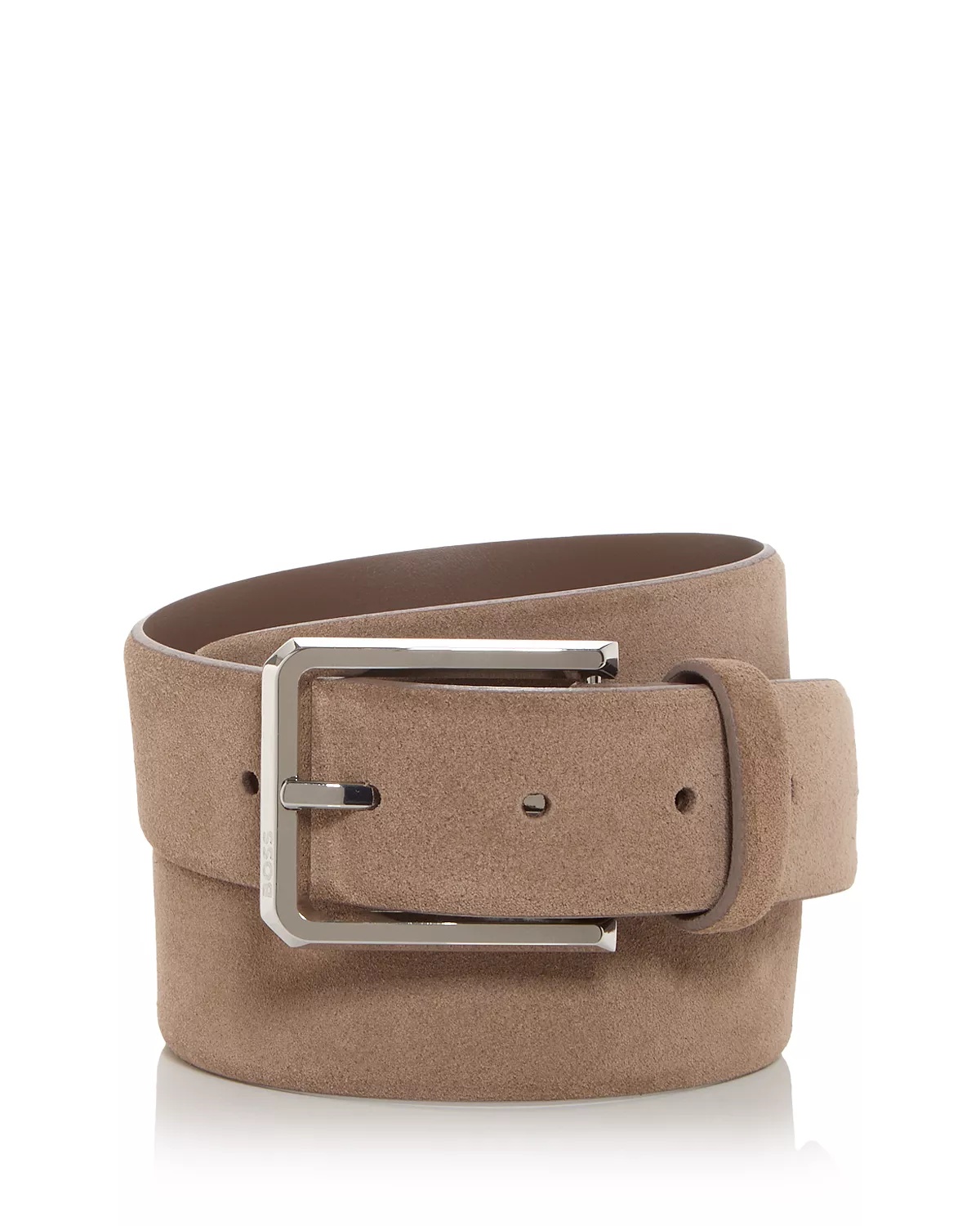 PRODUCT DETAILS - 1.25" wide - Silver-tone square buckle with pin closure - Order one waist size up - Suede/leather - Imported Web ID: 5447184
