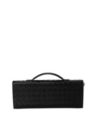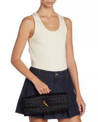 PRODUCT DETAILS - Top handle - Dimensions: 12.2"W x 1.2"D x 5.1"H - Metallic knot flap closure - Interior slip pocket, six interior card slots - Signature intrecciato woven leather - Brass-tone hardware - Mannequin model measurements: 5'10" height, wearing a size 4 or small - Lined - Leather - Made in Italy Web ID: 5007728