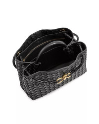 PRODUCT DETAILS - Top handle, 3.7" drop - Shoulder strap, 17.7" drop - Dimensions: 12.8"W x 4.7"D x 9.4"H - Magnetic closure - Two interior compartments - Two interior slip pockets and one zip pocket - Signature intrecciato woven leather - Knotted metallic embellishment - Brass-tone hardware - Lined - Leather - Made in Italy Web ID: 4805921