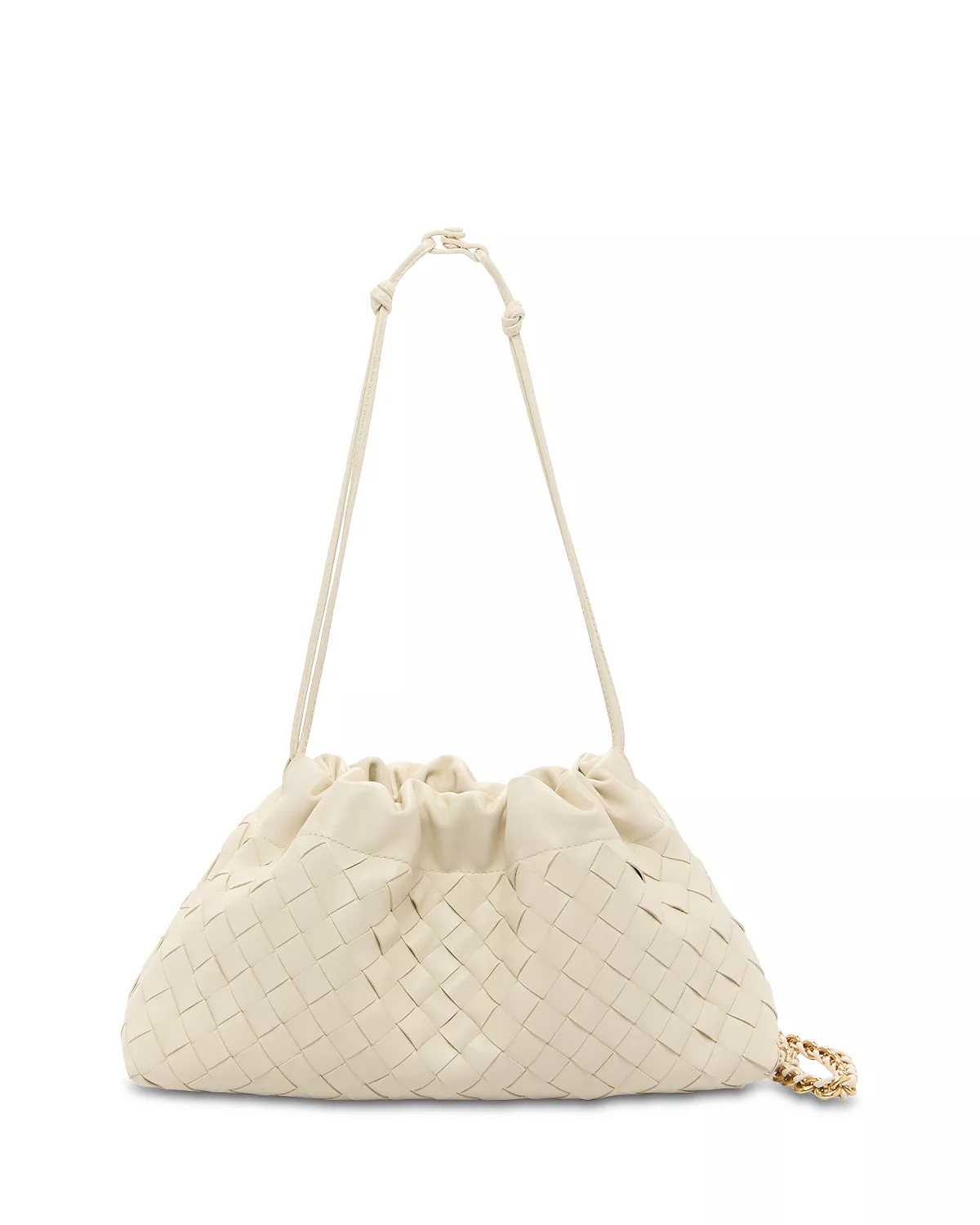 PRODUCT DETAILS - Detachable knotted shoulder strap, 13.75" drop - Removable chain shoulder strap, 16.5" drop - Dimensions: 13"W x 3"D x 7.5"H - Drawstring closure - Signature intrecciato woven leather detailing - Brass-tone hardware - Mannequin model measurements: 5'10" height, wearing a size 4 or small - Nylon lining - Leather - Made in Italy Web ID: 5592692