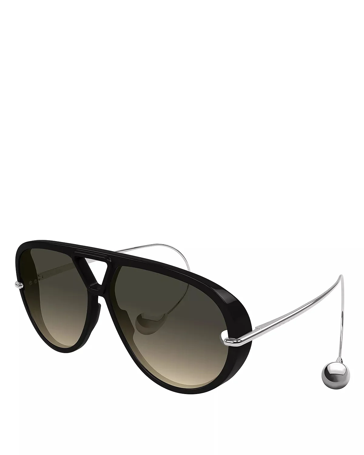 Fashion Show Drop Earring Geometrical Sunglasses, 63mm