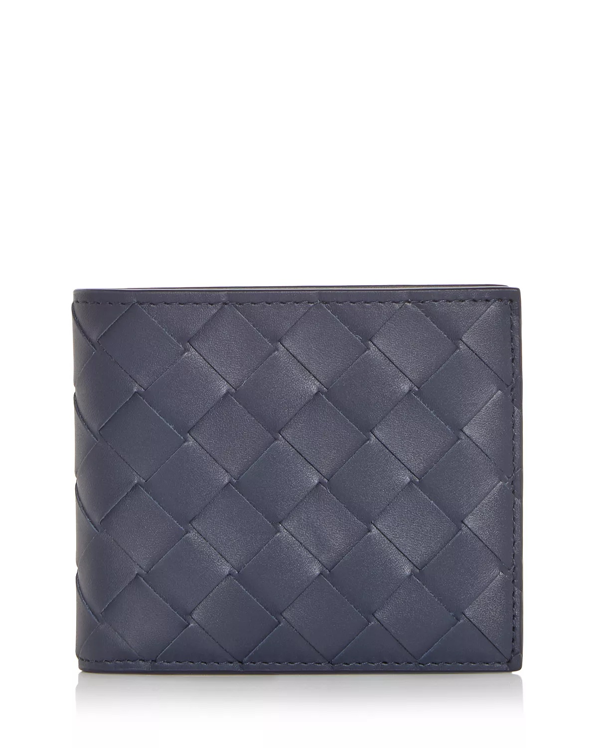 PRODUCT DETAILS - Dimensions: 4.25"W x 1"D x 3.75"H - Bifold - Two interior bill compartment, two interior slip pockets, eight interior card slots - Signature Intrecciato woven leather detailing - Leather and fabric lining - Leather - Made in Italy Web ID: 4910615