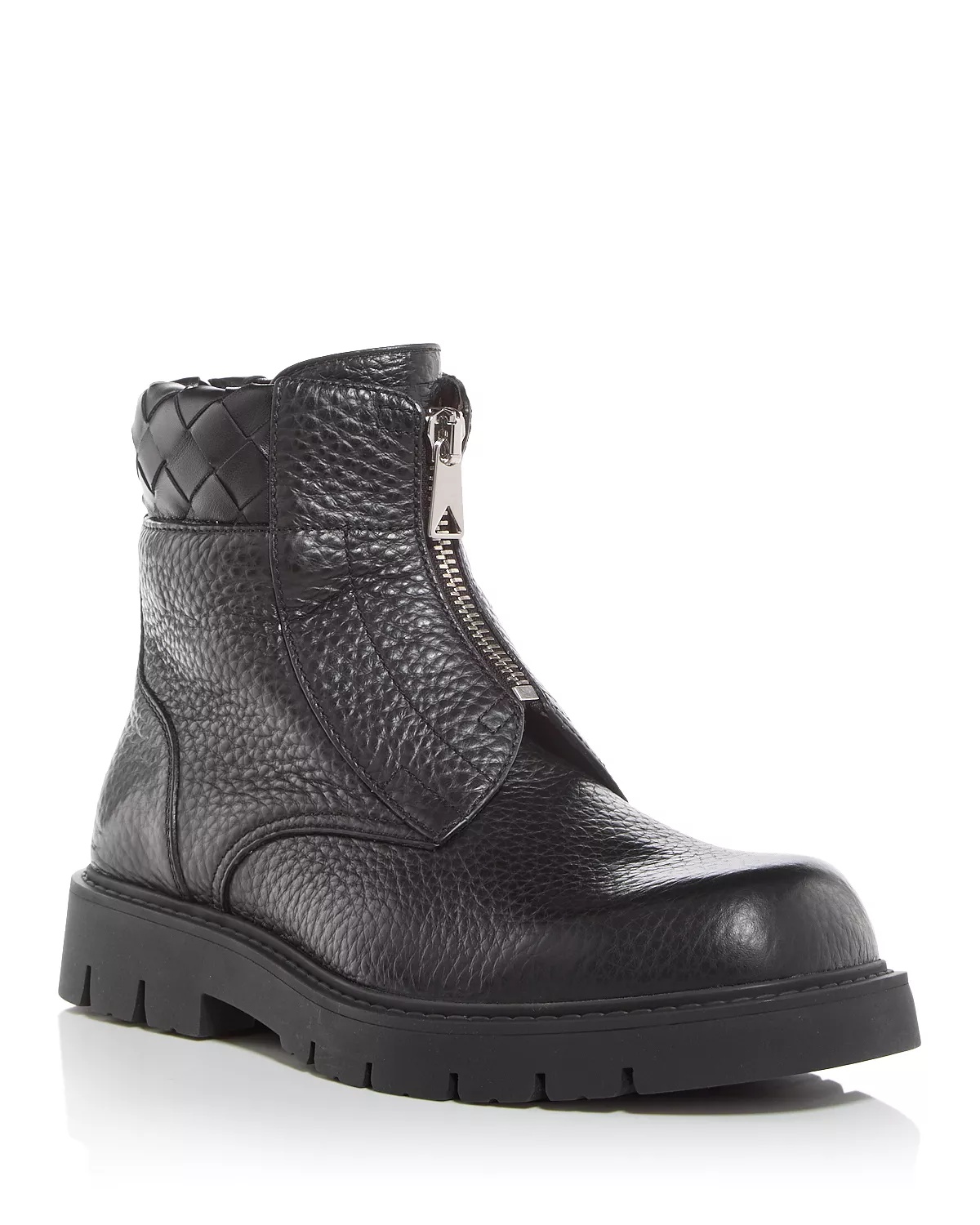 PRODUCT DETAILS - Fits true to size, order your normal size - Round toe - Functional front zip - Signature Intrecciato woven details at shaft - 1.5" stacked heel - Leather upper and lining, rubber sole - Made in Italy Web ID: 5116414