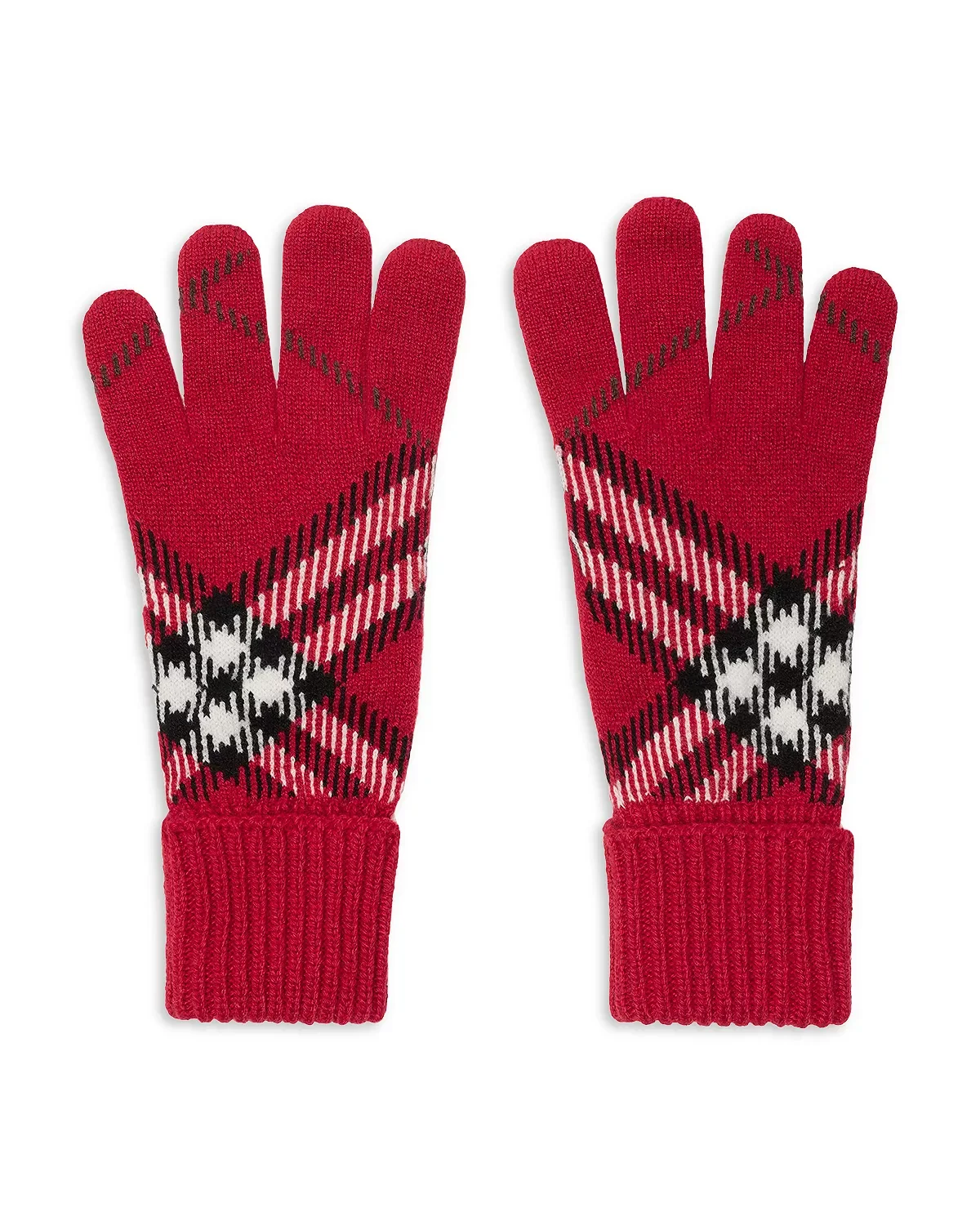 PRODUCT DETAILS - A special-edition design - One size fits most - Rib knit cuffs - Jacquard knit with the Burberry Check - Exclusively available at Bloomingdale's and Burberry - This item is part of our Bloomingdale's x Burberry Happy Together holiday pop-up featuring wow presents, thoughtful finds, and an exclusive capsule. - Imported Web ID: 5707629 MATERIAL & CARE - Cashmere/polyester/polyamide - Dry clean