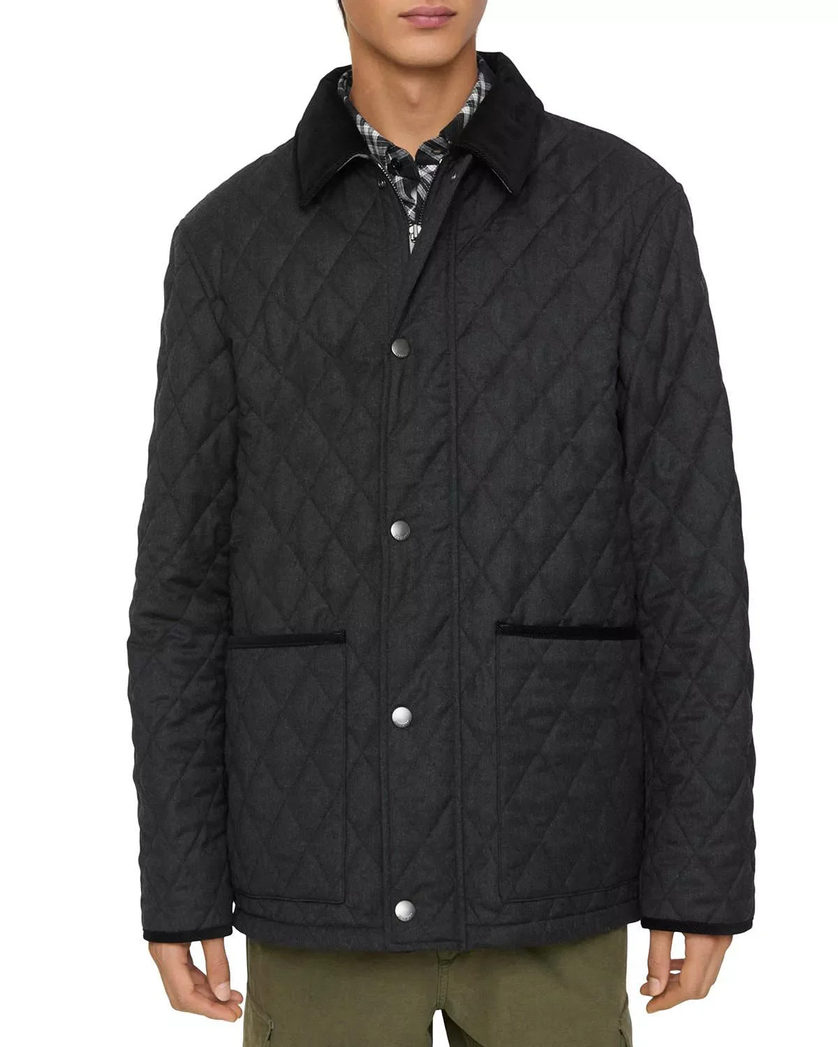 Micro Check-stitch Nylon Blend Bomber Jacket