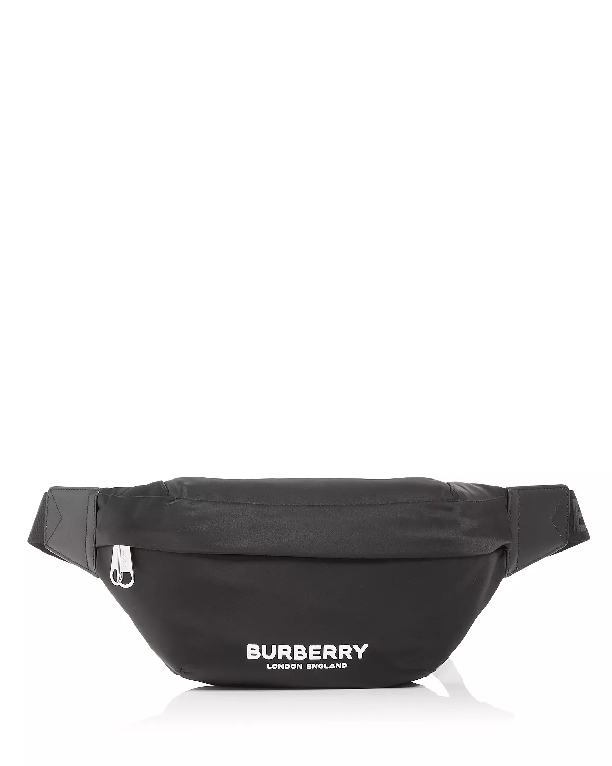 SIZE & FIT - Quintessentially British, Burberry is one of the most iconic labels of all time—most notably recognized for its classic trench coats and signature Burberry check. - The company got its start in 1856, making outerwear that could hold up to England’s notorious weather. - This revolutionary rain gear was lightweight, breathable, and durable—features that make its famous coats so beloved today. - Burberry carries on its legacy with exceptionally designed shoes, accessories, handbags, fragrances, and more polished styles. PRODUCT DETAILS - Adjustable waist strap with clip closure - Dimensions: 12.25"W x 3"D x 6.25"H - Zip closure - Exterior zip pocket, interior slip pocket - Leather trim details - Tonal logo tape at waist strap - Logo at front - Lined - Nylon and polyurethane; trim: leather - Imported Web ID: 4257291