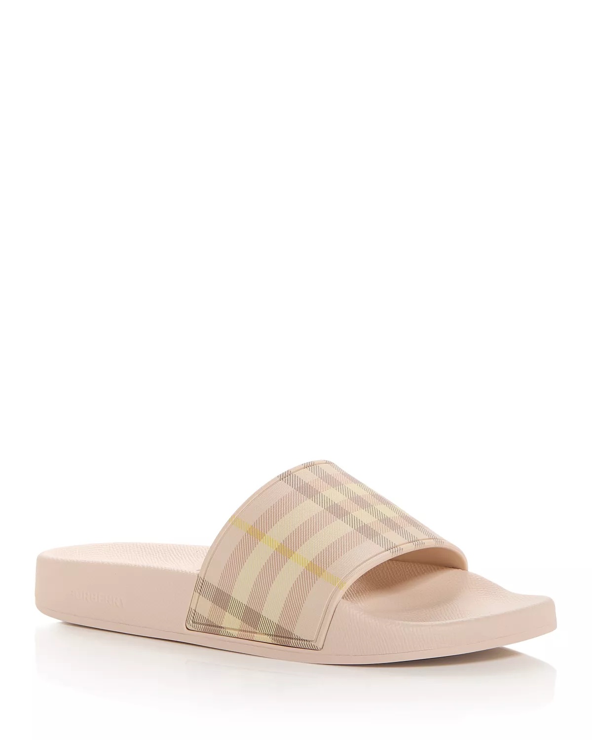 PRODUCT DETAILS - Fits true to size, order your normal size - Open toe - Slip on - Signature check print - Synthetic upper, lining and sole - Made in Italy Web ID: 5450305