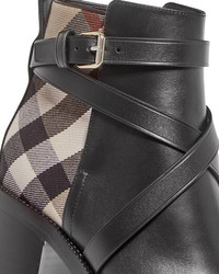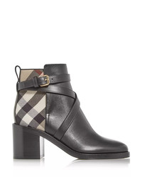 House Check and Leather Ankle Boots