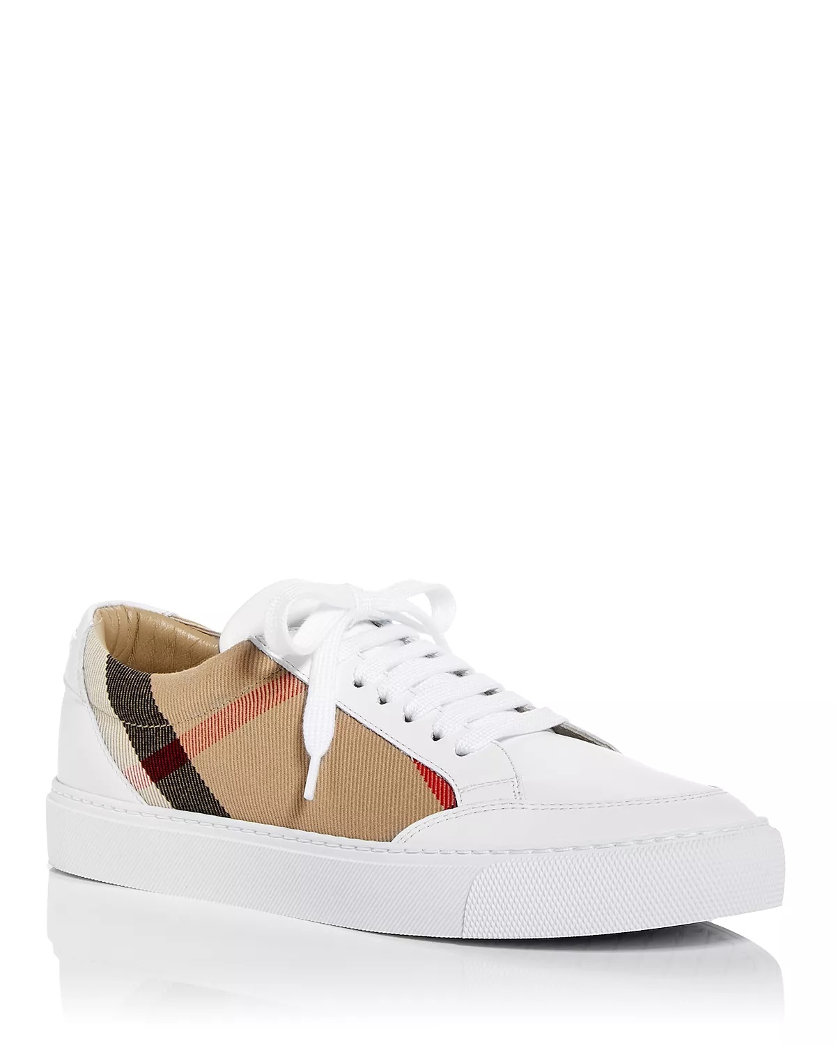 SIZE & FIT - Quintessentially British, Burberry is one of the most iconic labels of all time—most notably recognized for its classic trench coats and signature Burberry check. - The company got its start in 1856, making outerwear that could hold up to England’s notorious weather. - This revolutionary rain gear was lightweight, breathable, and durable—features that make its famous coats so beloved today. - Burberry carries on its legacy with exceptionally designed shoes, accessories, handbags, fragrances, and more polished styles. PRODUCT DETAILS - Fits true to size, order your normal size - Padded collar and tongue for optimal comfort - Round toe - Lace up - Signature vintage check print - Leather overlay details - Embossed logo lettering at heel - Leather and fabric upper, leather lining, rubber sole - Made in Italy Web ID: 4309729
