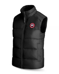 PRODUCT DETAILS - Fits true to size, order your normal size - Approx. 22" from shoulder to hem, based on a size small - Model measurements: 5'10" height, 33.5" bust, 23.5" waist, 34.5" hips, wearing a size small - Down-filled collar, signature double-stripe reflective details at back - Sleeveless - Front zip closure - Ultra lightweight channel fill design - Two exterior side zip pockets, interior drop-in pocket - Interior drawcord hem to customize fit - 750-fill power Hutterite white duck down - Thermal experience index 1: lightweight for active pursuits (41°F to 23°F) - Made in Canada Web ID: 3901422