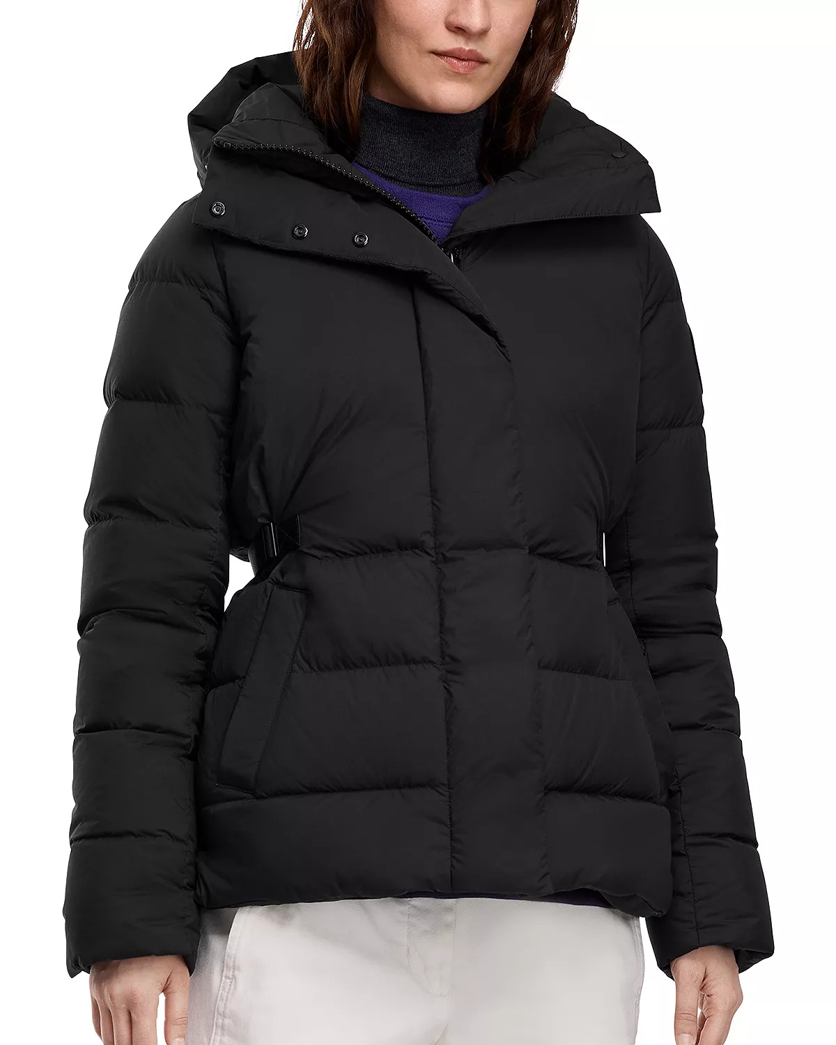 SIZE & FIT - Fits true to size, order your normal size - Designed for a slim fit, hits at hip - Model measurements: 5'10" height, 33.5" bust, 23.5" waist, 34.5" hips, wearing a size XS PRODUCT DETAILS - Thermal experience index 3: fundamental warmth fashioned for everyday use (15°F to -5°F) - Removable hood is adjustable two ways - Long sleeves - Front two-way zip closure - Adjustable pullers at the side of the waist to customize the fit - Two exterior welt pockets with snap closure, two interior drop-in mesh pockets, one security pocket - Quilted design - Made in Canada Web ID: 5699976 MATERIAL & CARE - Shell & lining: 100% nylon; lining: 80% down/20% feathers - Machine wash