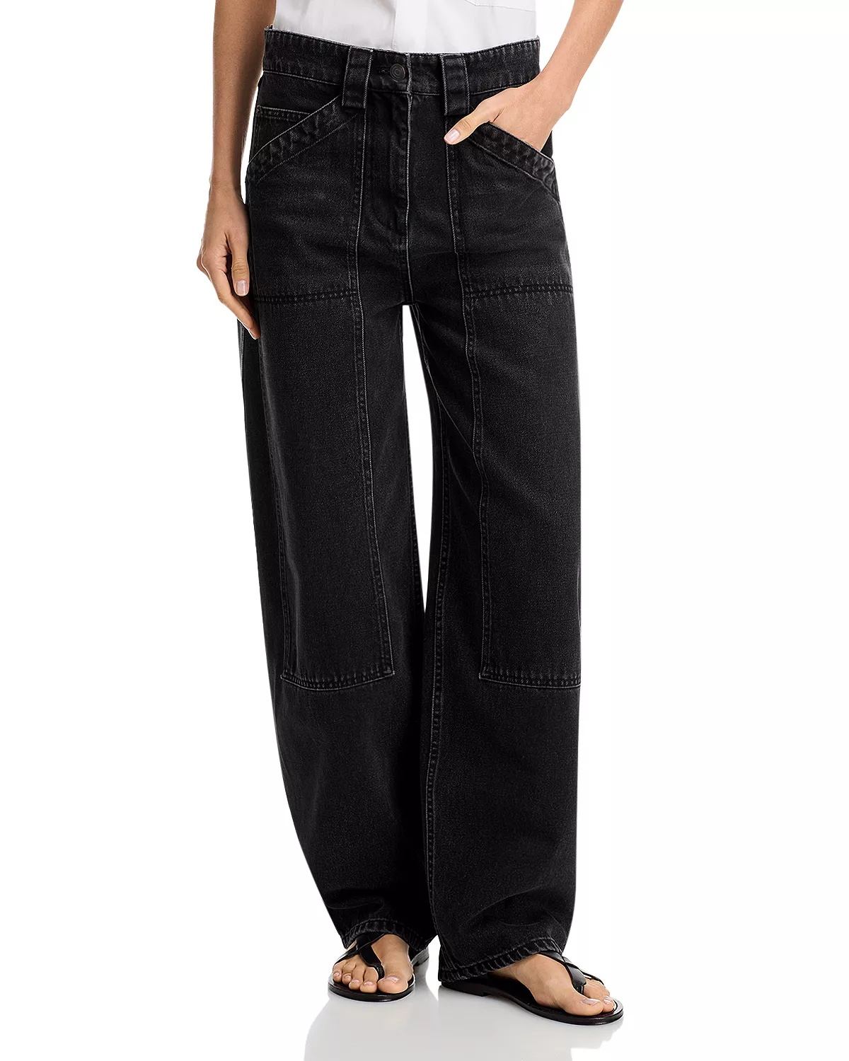 SIZE & FIT - Fits true to size, order your normal size - Rise: 10" - Inseam: 30.75" - Leg opening: 17" PRODUCT DETAILS - Zip fly with button closure, four-pocket silhouette - Tonal stitching, black hardware, belt loops - Barrel-leg silhouette - Imported Web ID: 5365250 MATERIAL & CARE - 100% cotton - Dry clean
