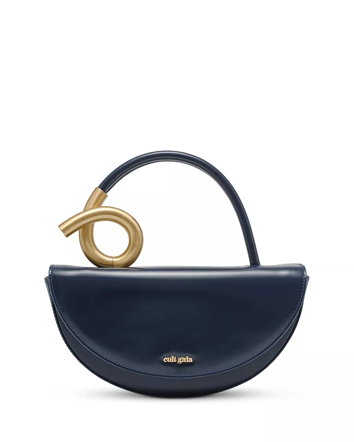 PRODUCT DETAILS - Sculptural top handle, 4.3" drop - Dimensions: 10.5"W x 3.5"D x 9.6"H - Flap closure - Logo detail on front - Gold-tone hardware - Lined - Main: leather; lining: 100% polyester - Imported Web ID: 5202417