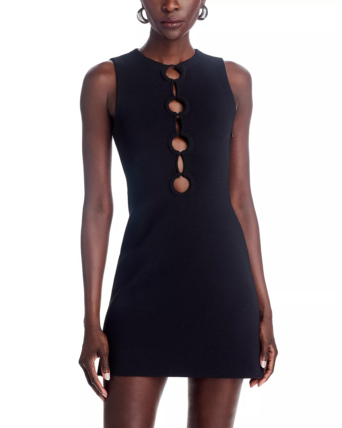 SIZE & FIT - Fits true to size, order your normal size - Designed for a mini length - Approx. 33" from high point shoulder to hem, based on a size small - Model measurements: 5'10" height, 33" bust, 25" waist, 35" hips, wearing a size small PRODUCT DETAILS - Round neck - Pullover style - Sleeveless - O-ring cutout trims at front - Imported Web ID: 5444400 MATERIAL & CARE - 53% rayon/46% nylon/1% spandex - Hand wash