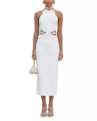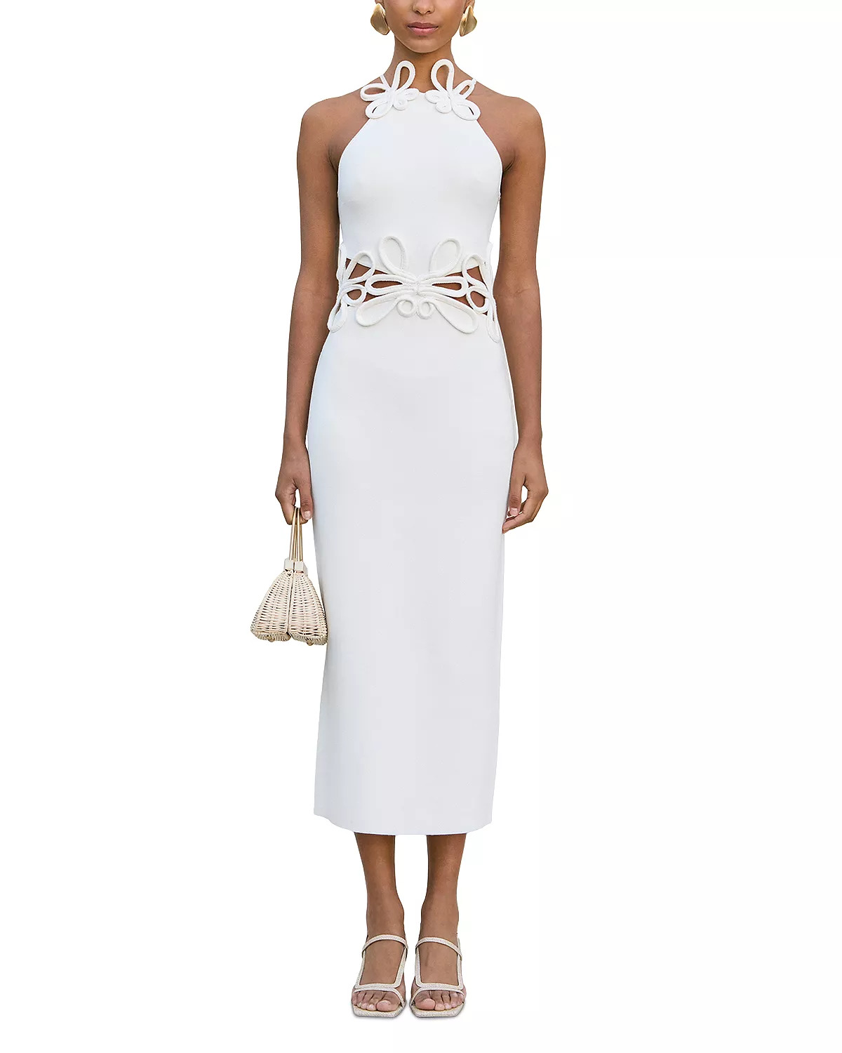 SIZE & FIT - Fits true to size, order your normal size - Fitted throughout - Mid-stretch fabric - Designed to hit at mid calf - Approx. 49" from high point shoulder to hem, based on size small - Model measurements: 5'11" height, 34" bust PRODUCT DETAILS - High neck, looped trim - Sleeveless - Looped detailing at cutout waist - Pullover style - Lined - Imported Web ID: 5563566 MATERIAL & CARE - 65% viscose/35% nylon; lining: 50% viscose/50% nylon - Dry clean