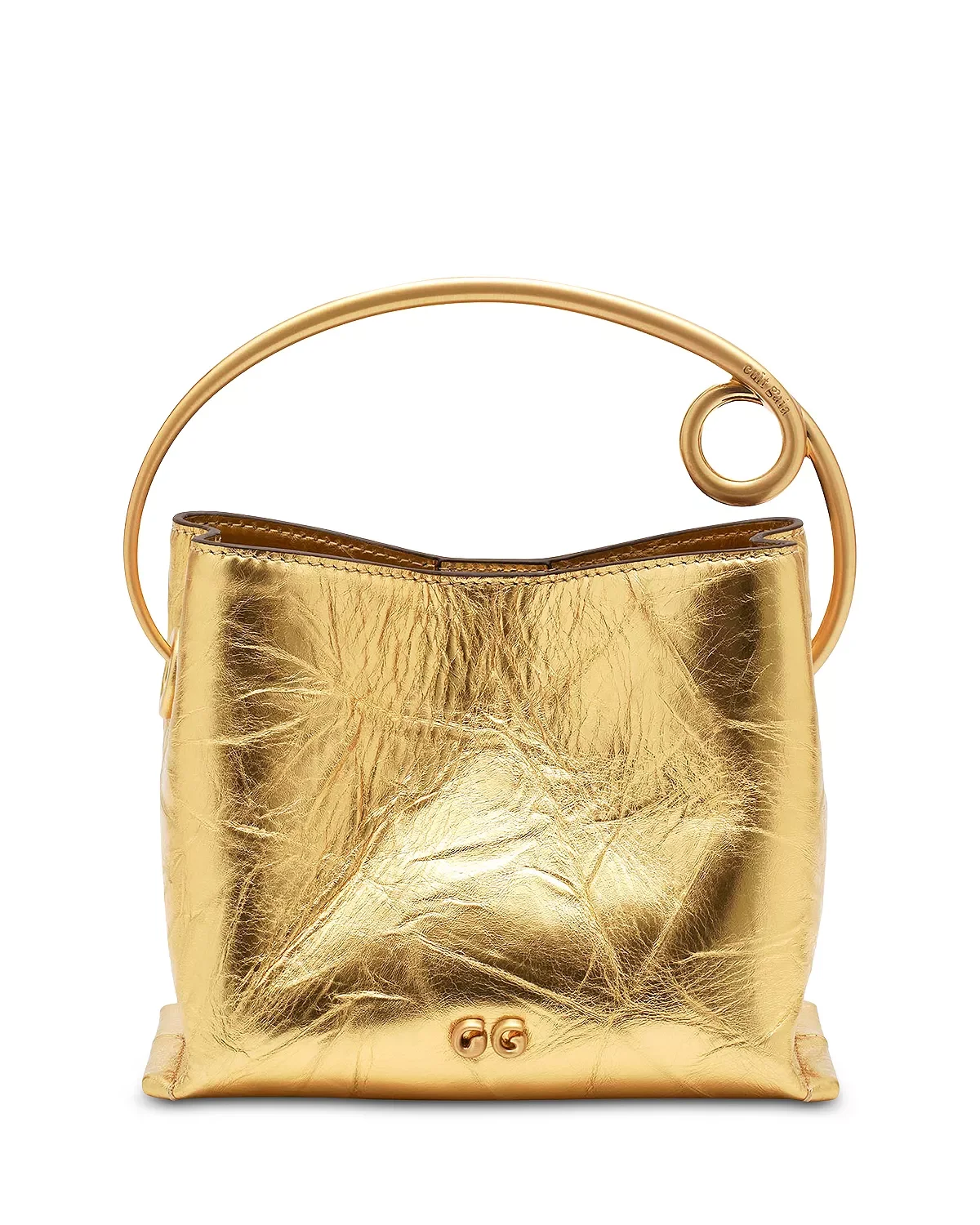 PRODUCT DETAILS - Sculptural handle - Dimensions: 6.9"W x 0.7"D x 6.1"H - Tab with magnetic snap closure - Metallic leather finish - From the Holiday 2025 collection - Lined - Main: leather; lining: 100% polyester; hardware: 100% zinc alloy - Imported Web ID: 5763130