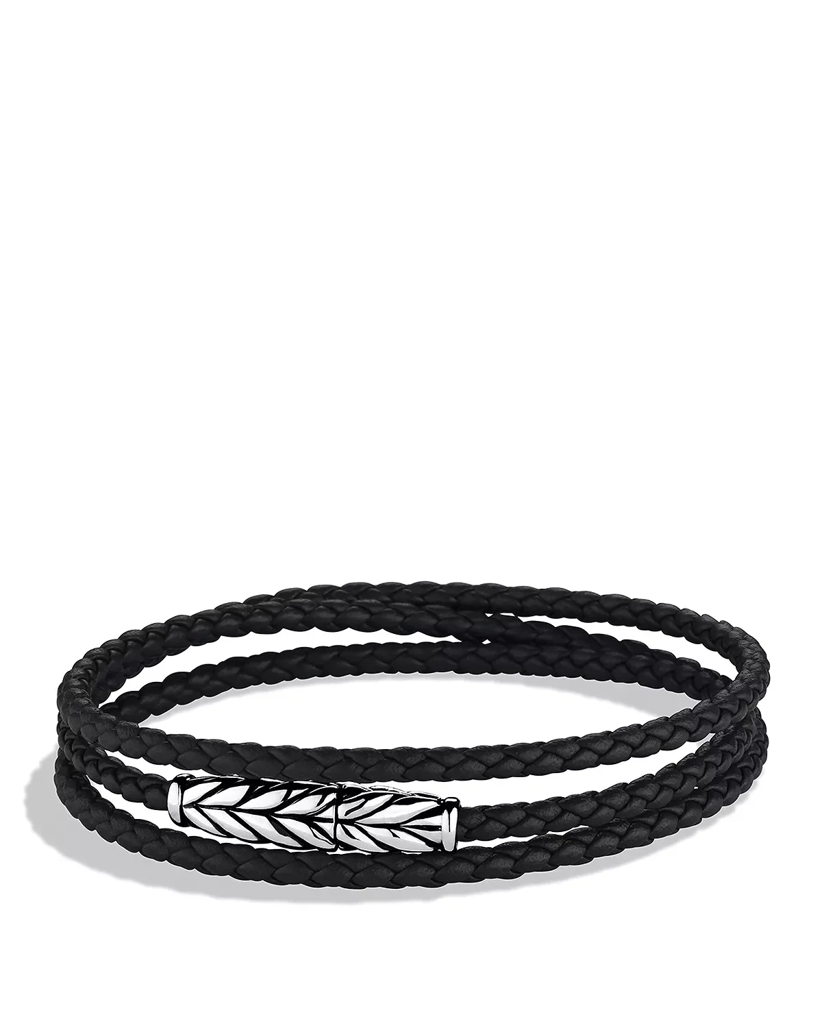 SIZE & FIT - Drawing from their artistic passions, David Yurman and his wife, Sybil, turn precious metals and rare gemstones into exquisite pieces of luxury jewelry and timepieces - David, a sculptor, and Sybil, a painter, launched their brand in New York City in 1980 and have been joined by their son Evan Yurman, who collaborates on every aspect of the business. - Each statement-making piece is sketched by David and produced to exacting standards using fine precious metals and rare gemstones. - The result is a legacy of iconic and beautiful wearable works of art. PRODUCT DETAILS - David Yurman skillfully reinterprets chevron—the ancient V-shaped pattern used in architecture and art—in this modern, sculptural collection. Viewed in relation to one another, each half of the motif is a mirror image of Cable. - Sterling silver - Woven leather - Chevron: 28 x 7mm - Bracelet: 3mm wide - Magnetic clasp - Order according to your wrist measurement: extra small: 6-6.5"; small: 6.5-7"; medium: 7-7.5"; large: 7.5-8"; extra large: 8-8.5 - Photo may have been enlarged and/or enhanced - All gemstone carat weights (tcw) are approximate; variance may be 0.05 carat. - Some silver jewelry may be surface-coated with rhodium to enhance metal color and shine; it may wear off over time requiring replating. - Imported Web ID: 923452