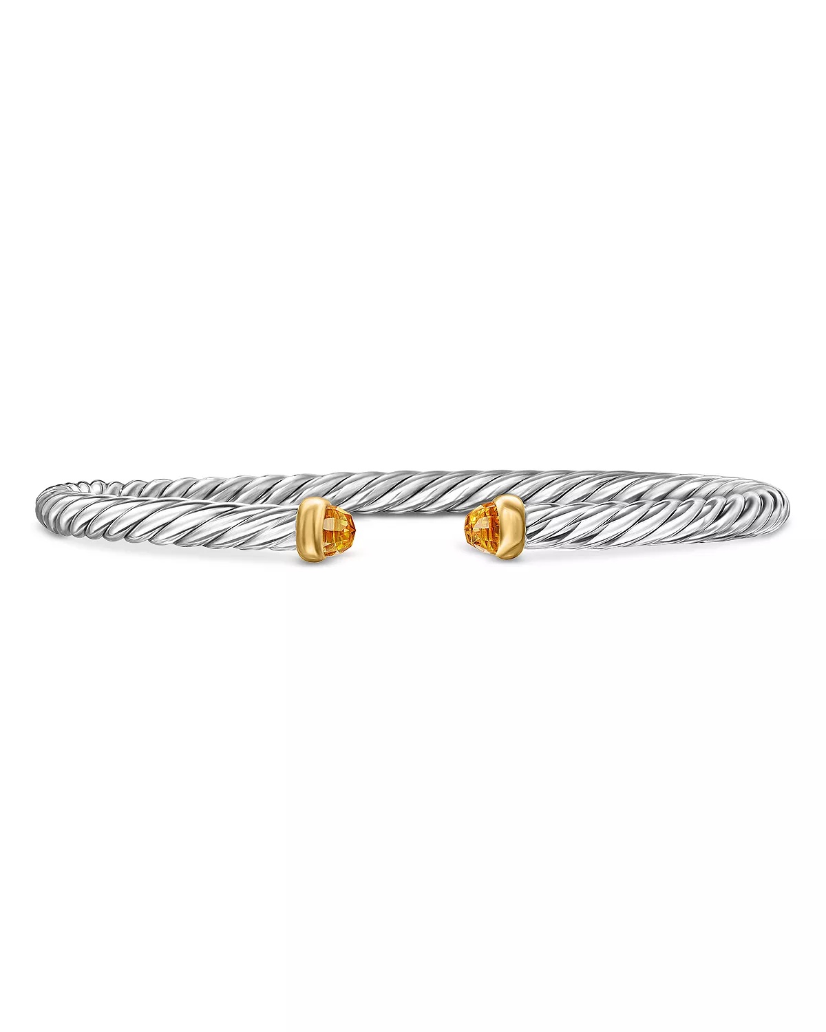 PRODUCT DETAILS - 4mm - From The Cable Collection® - Sterling silver, 14K yellow gold, Nitinol core to provide flex movement - Order according to your wrist measurement: extra small: 5-5.5"; small: 5.5-6"; medium: 6-6.5"; large: 6.5-7"; extra large: 7-7.5" - Almost all gemstones and blue and black diamonds have been treated to enhance their beauty and require special care - Photo may have been enlarged and/or enhanced. - All gemstone carat weights (ct. t.w.), if mentioned, are approximate; variance may be .05 carat - Items sold separately. - Made in USA Web ID: 5139774