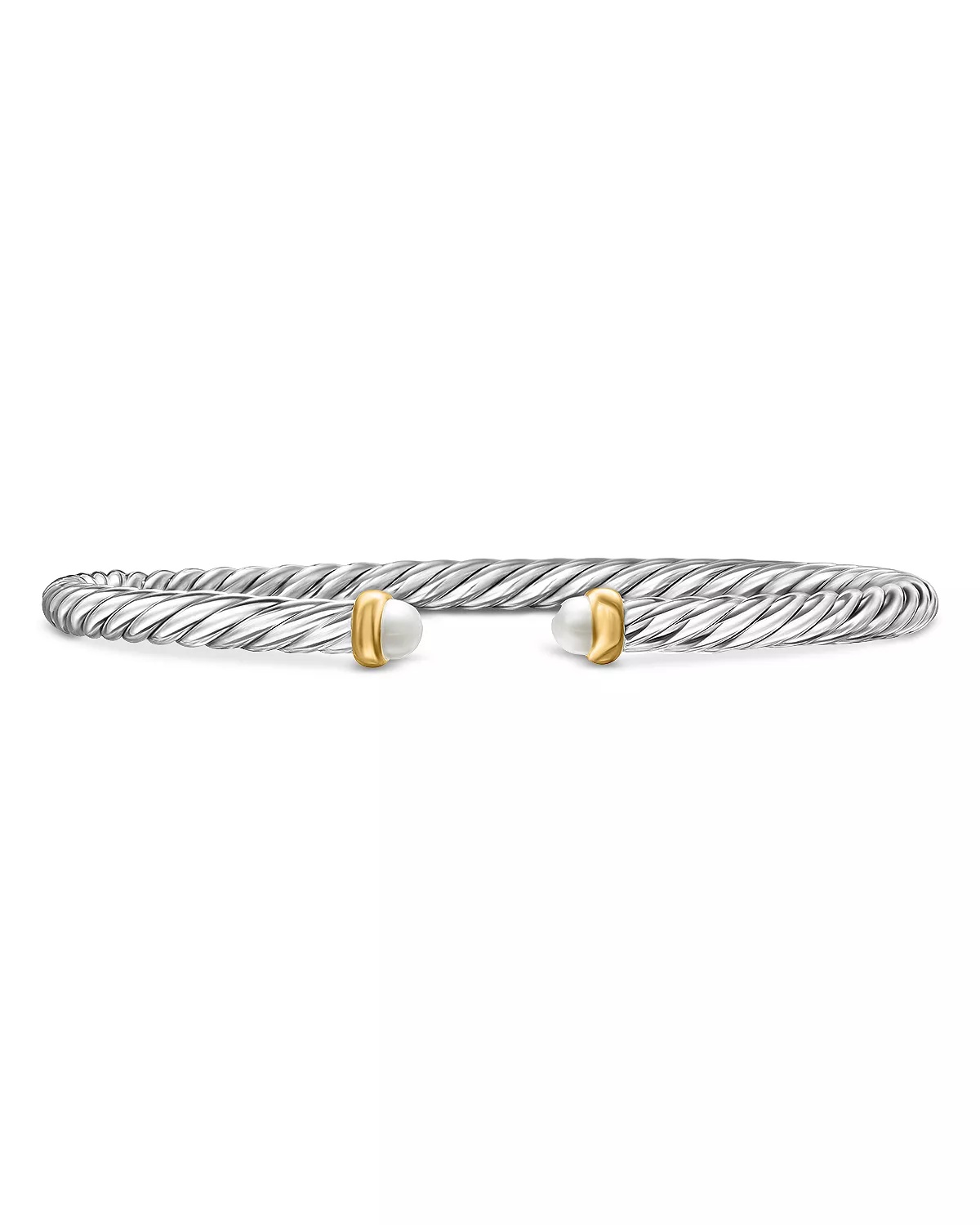 PRODUCT DETAILS - 4mm - From The Cable Collection® - Sterling silver, 14K yellow gold, Nitinol core to provide flex movement - Order according to your wrist measurement: extra small: 5-5.5"; small: 5.5-6"; medium: 6-6.5"; large: 6.5-7"; extra large: 7-7.5" - Almost all gemstones and blue and black diamonds have been treated to enhance their beauty and require special care - Photo may have been enlarged and/or enhanced. - All gemstone carat weights (ct. t.w.), if mentioned, are approximate; variance may be .05 carat - Items sold separately. - Made in USA Web ID: 5139774