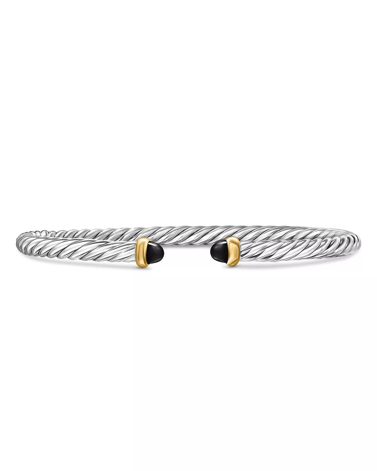 PRODUCT DETAILS - 4mm - From The Cable Collection® - Sterling silver, 14K yellow gold, Nitinol core to provide flex movement - Order according to your wrist measurement: extra small: 5-5.5"; small: 5.5-6"; medium: 6-6.5"; large: 6.5-7"; extra large: 7-7.5" - Almost all gemstones and blue and black diamonds have been treated to enhance their beauty and require special care - Photo may have been enlarged and/or enhanced. - All gemstone carat weights (ct. t.w.), if mentioned, are approximate; variance may be .05 carat - Items sold separately. - Made in USA Web ID: 5139774