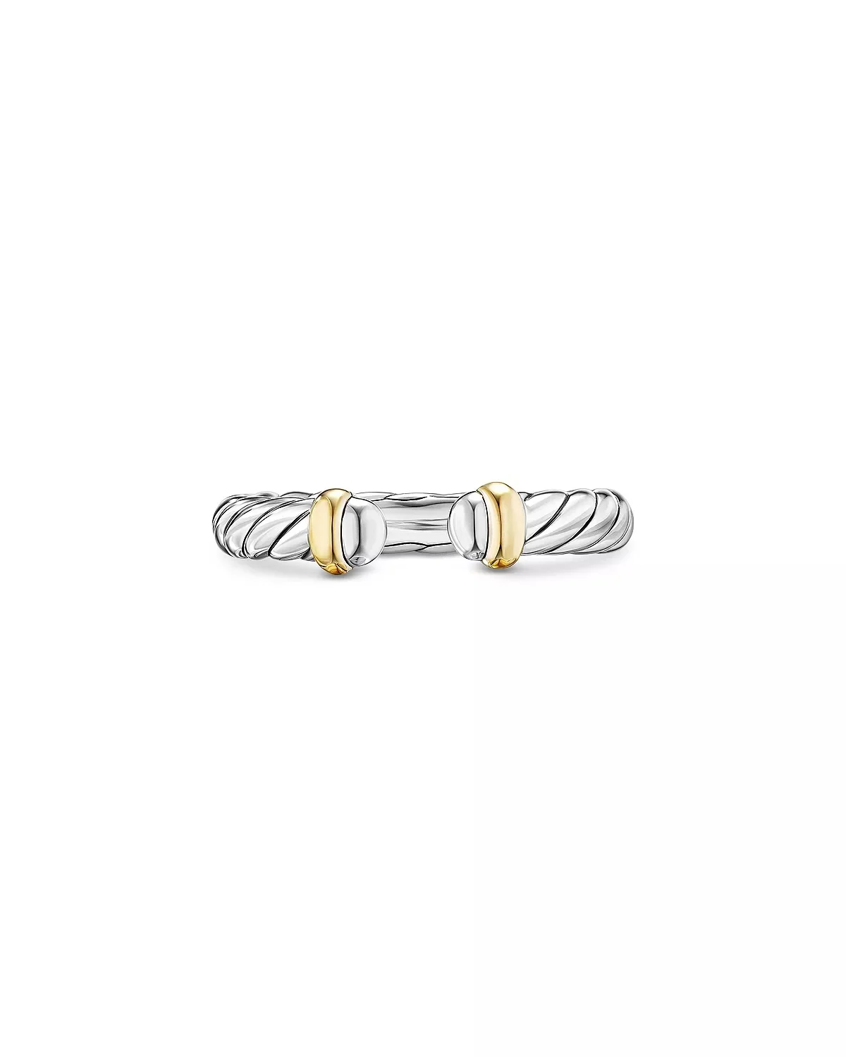 SIZE & FIT - Drawing from their artistic passions, David Yurman and his wife, Sybil, turn precious metals and rare gemstones into exquisite pieces of luxury jewelry and timepieces - David, a sculptor, and Sybil, a painter, launched their brand in New York City in 1980 and have been joined by their son Evan Yurman, who collaborates on every aspect of the business. - Each statement-making piece is sketched by David and produced to exacting standards using fine precious metals and rare gemstones. - The result is a legacy of iconic and beautiful wearable works of art. PRODUCT DETAILS - From the Cable Collectibles® collection - Sterling silver with 14K yellow gold - 3.4MM - Photo may have been enlarged and/or enhanced. - Imported Web ID: 4926570