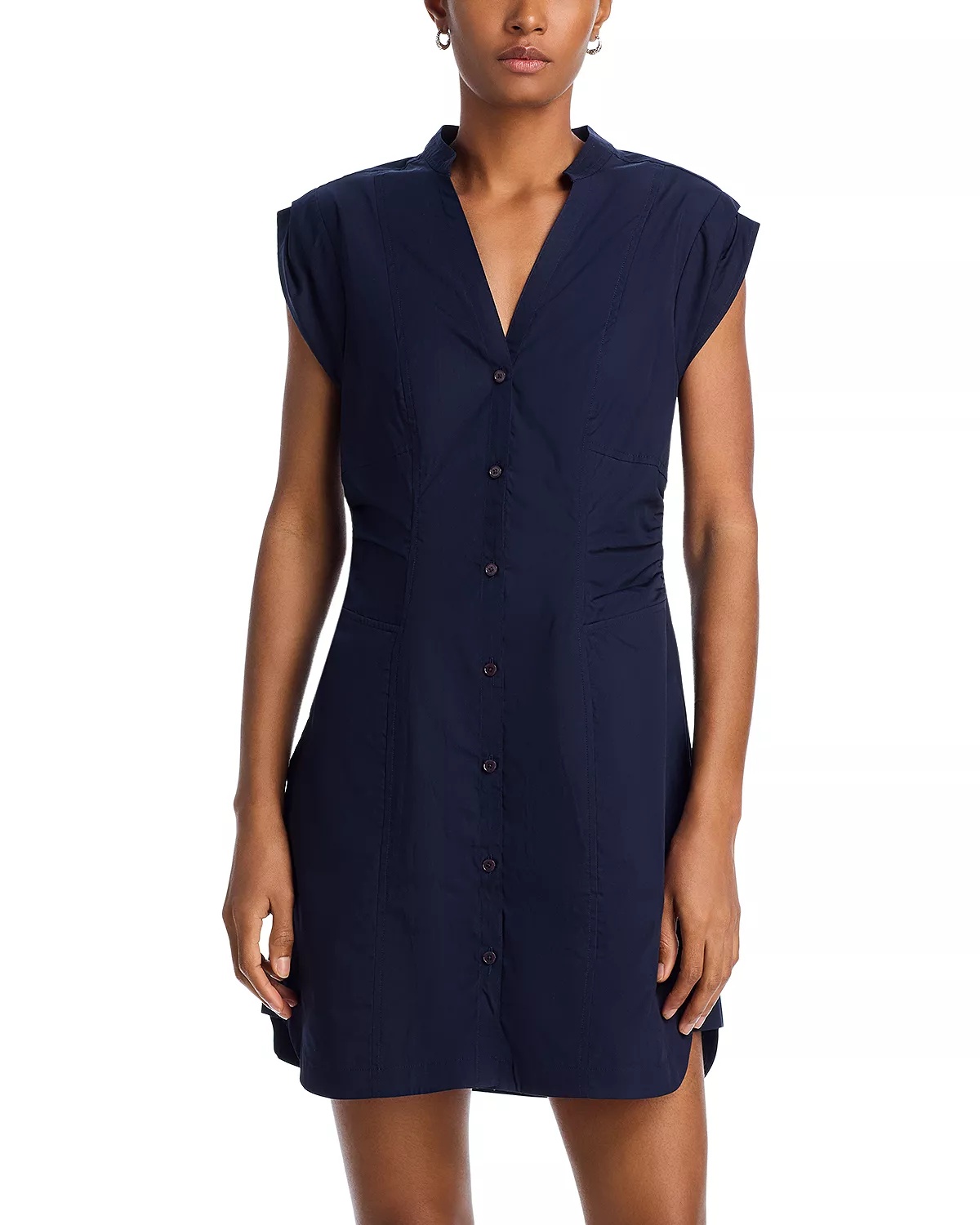 SIZE & FIT - Fits true to size, order your normal size - Designed for a mini length - Approx. 35" from high point of shoulder to hem - Model measurements: 5'10" height, 33" bust, 25" waist, 35" hips PRODUCT DETAILS - Collared V-neck - Button front closures - Short sleeves - Smocked at back waist - Side-slits - Imported Web ID: 5315345 MATERIAL & CARE - Cotton - Dry clean
