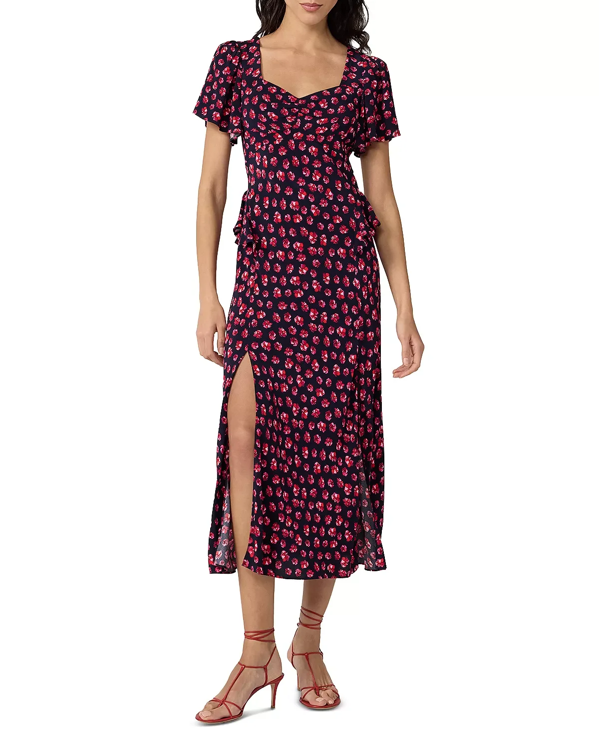 SIZE & FIT - Fits true to size, order your normal size - Slightly stretchy fabric - Designed to hit above the ankle - Approx. 51.5" length from shoulder to hem PRODUCT DETAILS - Sweetheart neck - Short sleeves - Ruffles at side waist - Back zip closure - Slit at front - Allover print - Imported Web ID: 5999813 MATERIAL & CARE - 50% viscose/50% rayon - Dry clean