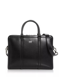 PRODUCT DETAILS - Double top handles, 5" drop - Removable, adjustable shoulder strap, tk" drop - Dimensions: 14.5"W x 3"D x 11"H - Interior zip pocket, interior slip pocket, interior card slot - Logo at front - Silver-tone hardware - Fabric lining - Leather - Made in Italy Web ID: 5050549