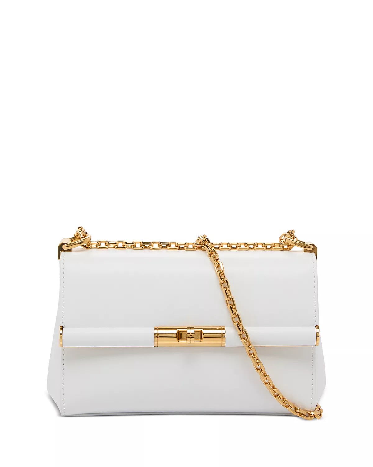 PRODUCT DETAILS - Chain strap - Dimensions: 8"L x 3"W x 5"H - Turn-lock closure - Interior slip pocket - Gold-tone hardware and foil-printed logo - Leather - Made in Italy Web ID: 5413829
