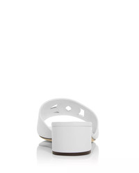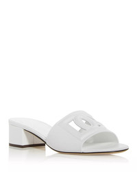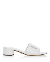 PRODUCT DETAILS - Fits true to size, order your normal size - Open toe - Slip on - Cutout logo detail at strap - 1.75" block heel - Leather upper, lining and sole - Made in Italy Web ID: 5070641
