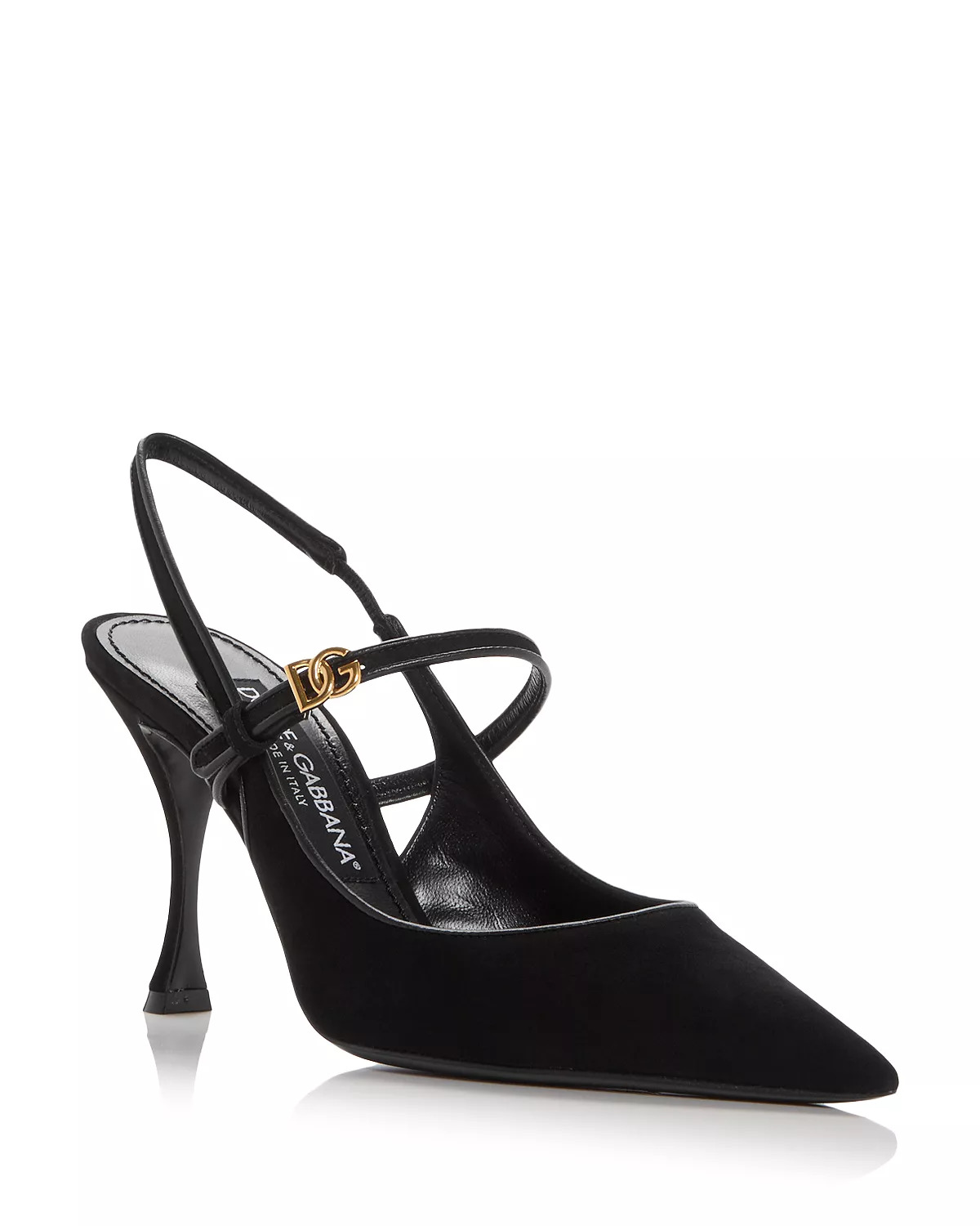 PRODUCT DETAILS - Fits true to size, order your normal size - Pointed toe - Slingback strap and adjustable buckle front strap - Gold-tone logo hardware buckle and DG logo on outsole - 3.5" heel - Leather upper, lining, and sole - Made in Italy Web ID: 5545439