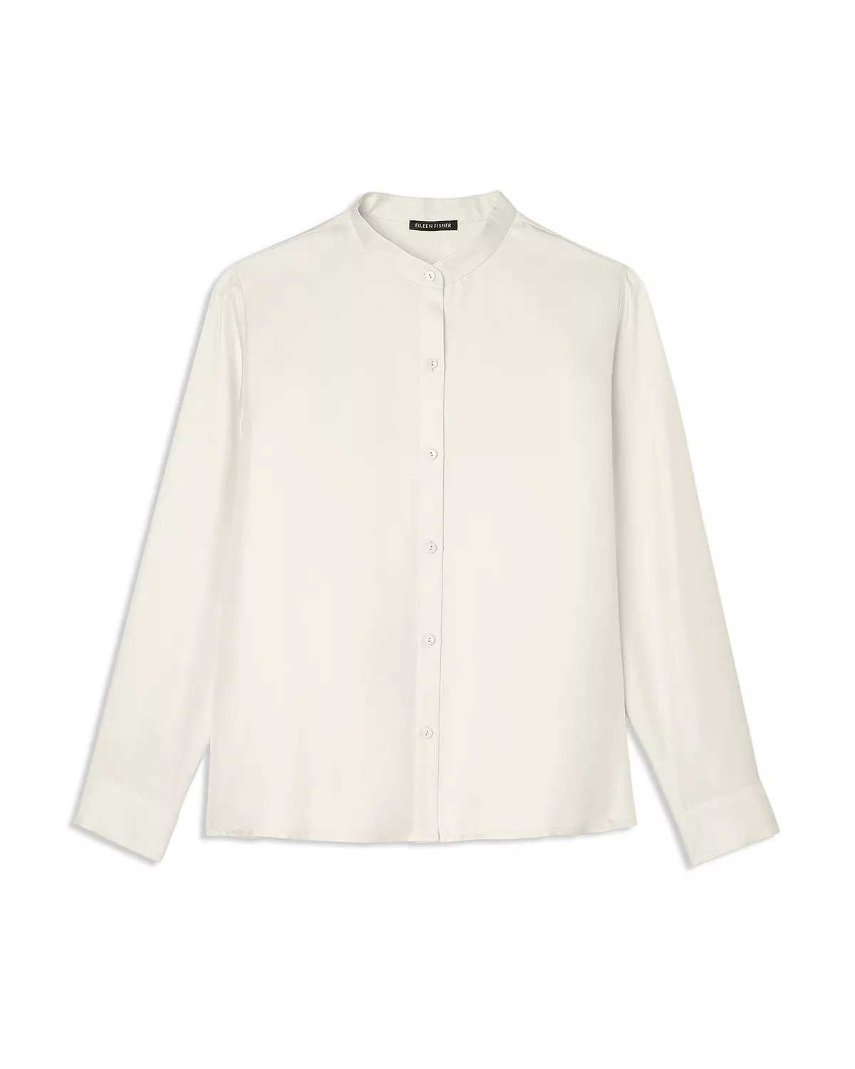 SIZE & FIT - Fits true to size, order your normal size - Designed for a drapey and fluid fit - 26" length - Model measurements: 5'10" height, 33" bust, 25" waist, 35" hips, wearing a size extra small PRODUCT DETAILS - Mandarin collar - Long sleeves - Front button closures - Medium-weight silk with subtle diagonal texture and a slight sheen - B Corp Certified. B Corp is one of the most demanding certifications that evaluates brands' social and environmental impact, with over 300 questions about governance, workers, communities and impact on the environment. - Imported Web ID: 5820383 MATERIAL & CARE - 100% silk - Machine wash