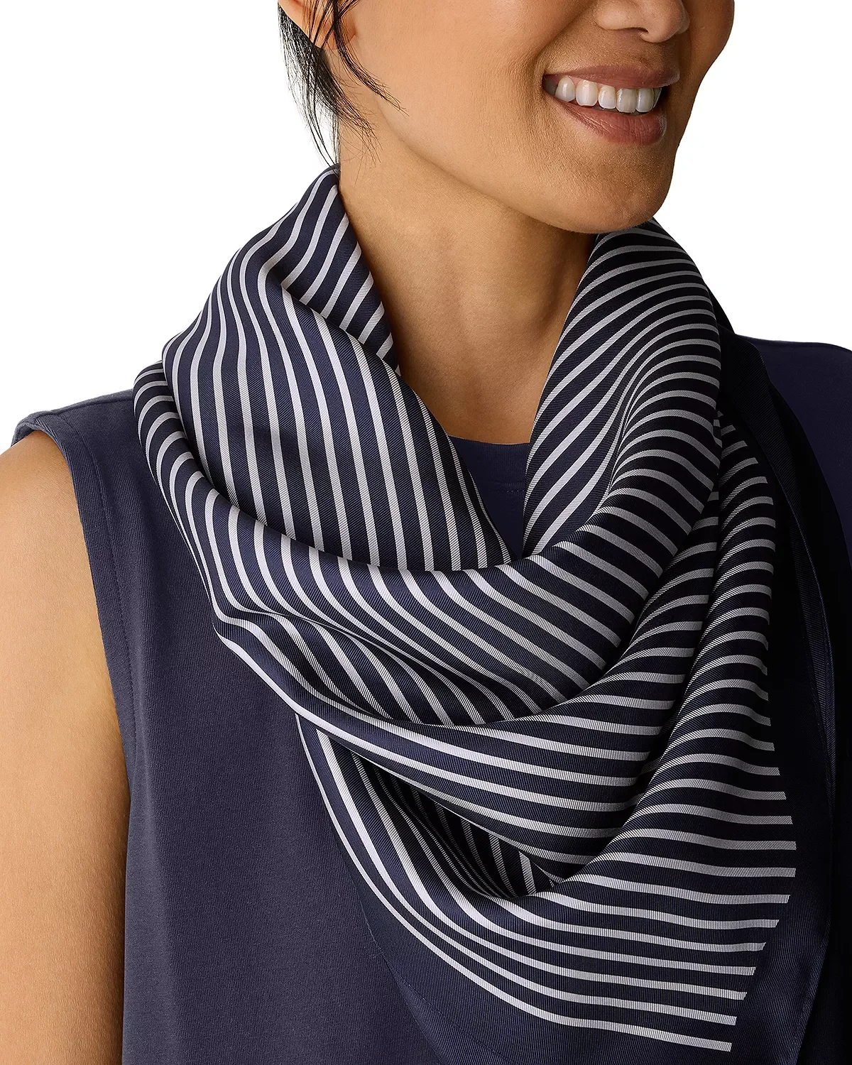 SIZE & FIT - One size PRODUCT DETAILS - Striped design - Solid border trim - B Corp Certified. B Corp is one of the most demanding certifications that evaluates brands' social and environmental impact, with over 300 questions about governance, workers, communities and impact on the environment. - Imported Web ID: 5893714 MATERIAL & CARE - 100% silk - Machine wash