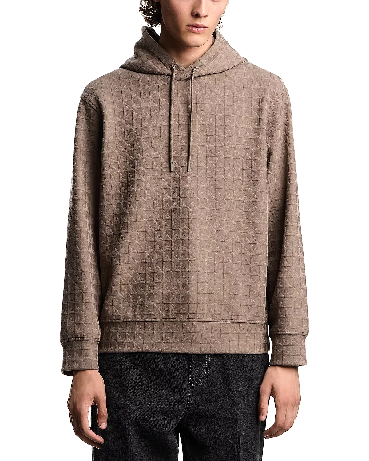 SIZE & FIT - Fits true to size, order your normal size - Designed for a regular fit PRODUCT DETAILS - Hooded with drawstring - Long sleeves - Allover mini eagle logo jacquard motif in tone - Partially lined - Imported Web ID: 5627062 MATERIAL & CARE - 46% cotton/46% lyocell/8% elastane; lining: 92% polyester/8% elastane - Machine wash